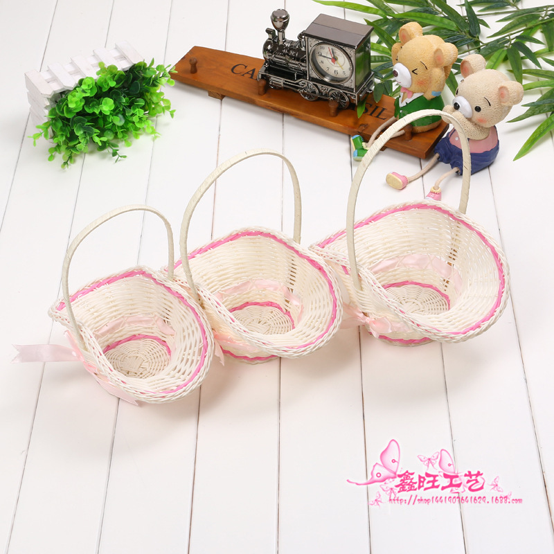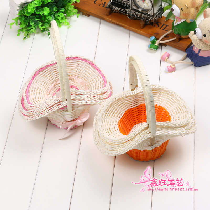 クリエイティブ帽子ポータブルダンスバスケット結婚式ウェディングブライドメイドフラワーガールバスケットプラスチック籐手織り収納バスケット