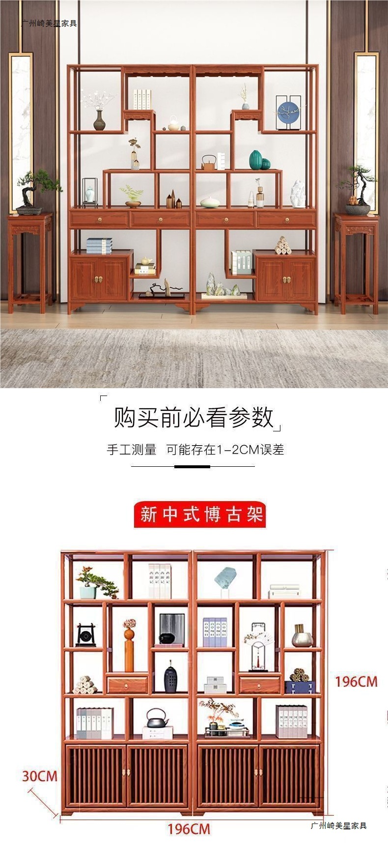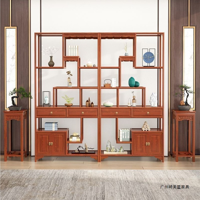 アンティークボーグラフ南ヤマトウッド新中国風マルチ宝閣多層ディスプレイラックティーティールームディスプレイキャビネット無垢材