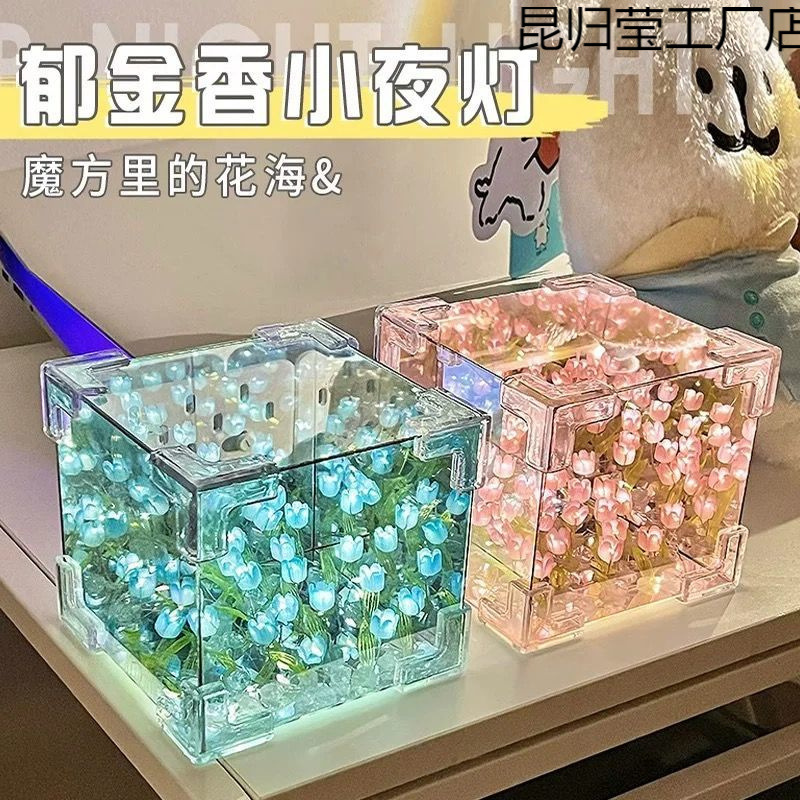 手作り立体ルービックキューブチューリップ花海ナイトライト素材ガールフレンドカップル親友漫画