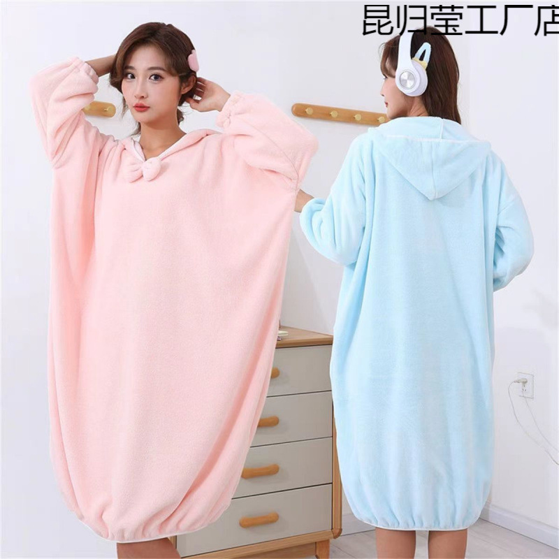 秋と冬の厚みのあるバスローブ新しいウェアラブルバスタオル家庭用バスローブ純綿吸収性ラップバススカートナイトガウンパジャマ