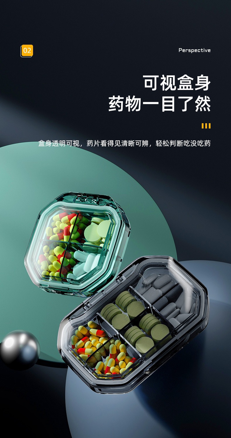 アマゾン8グリッド密封薬箱 防塵防湿 薬収納 週7日分の薬箱 卸売 密封防湿