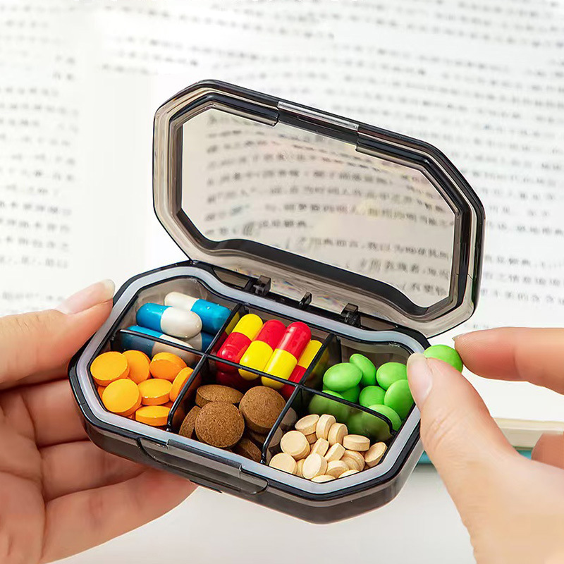 ポータブル6格薬箱多格シリコンシール付き小型ミニ薬箱プラスチック透明薬品収納箱