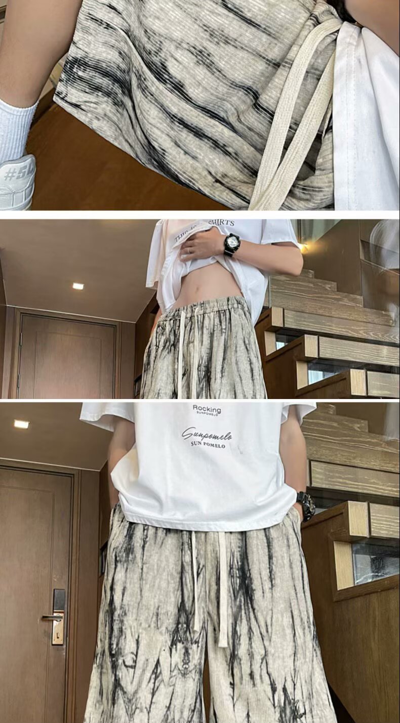 男女カップルは夏の薄い氷糸の高級感のあるワイドパンツを着て、ゆったりとしたカジュアルなズボンのストレートパンツをデザインします。