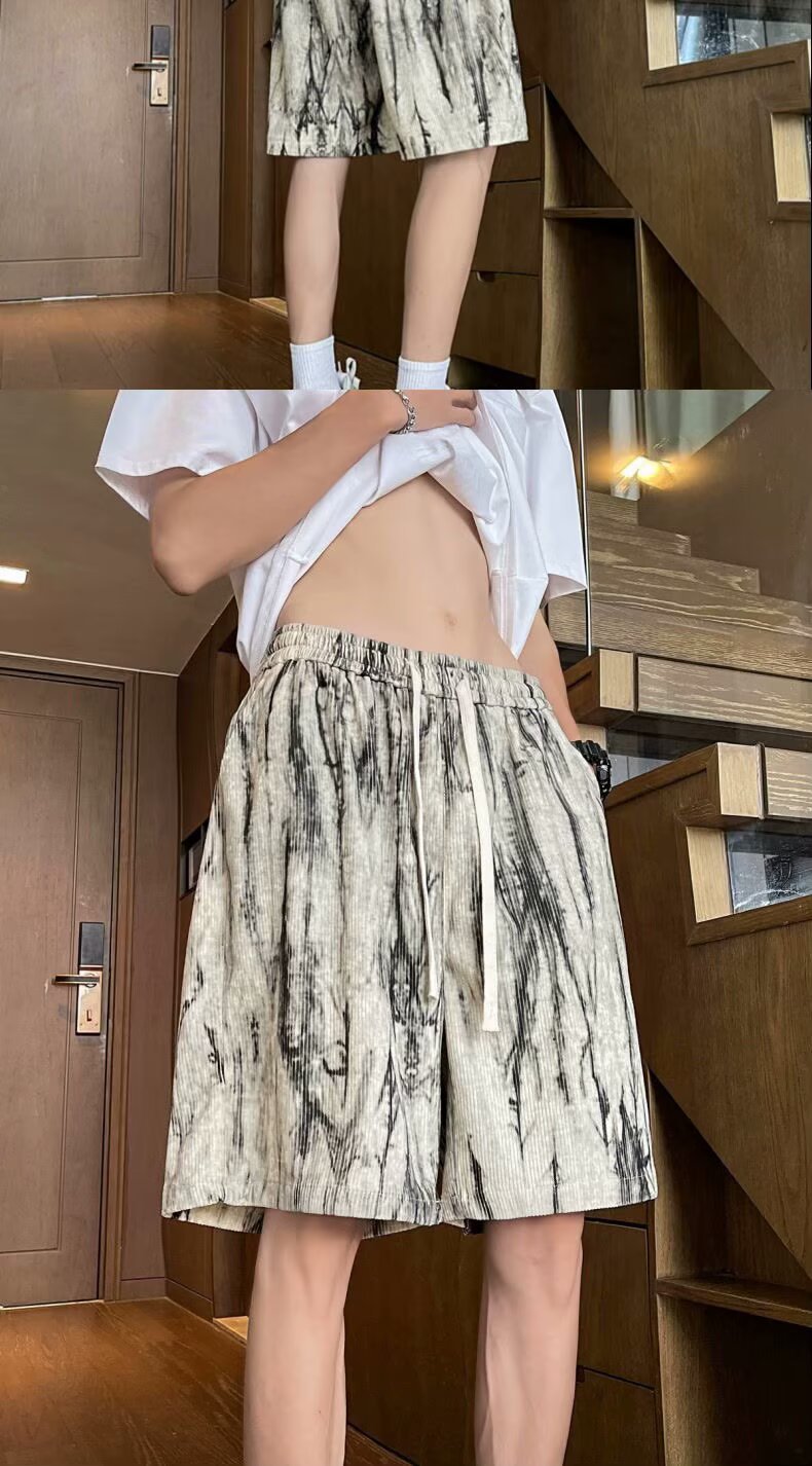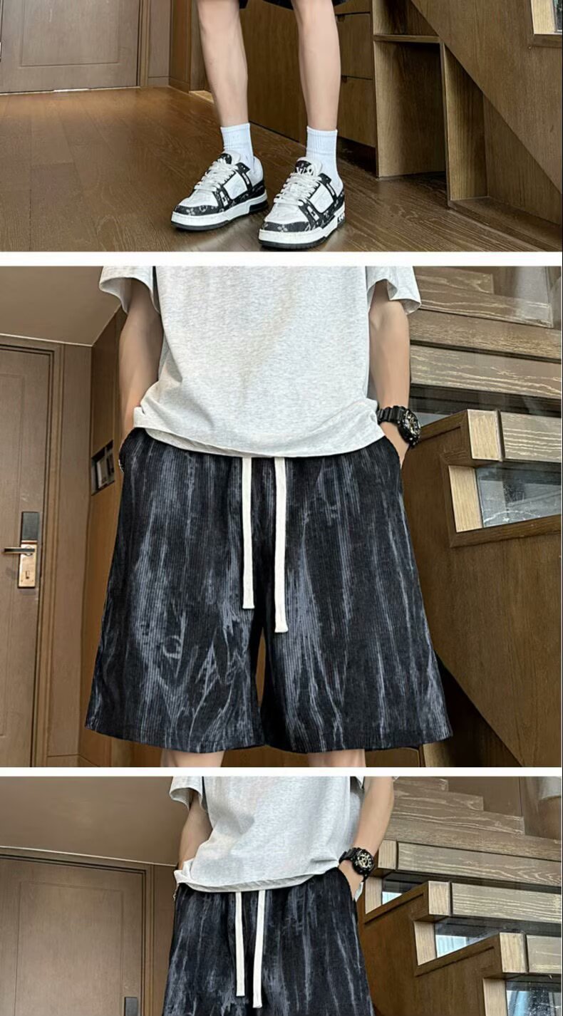 新しいアウターウェア夏薄いビーチショーツメンズ大きいサイズルーズカジュアル5点式ビッグパンツアイスシルクスポーツパンツ