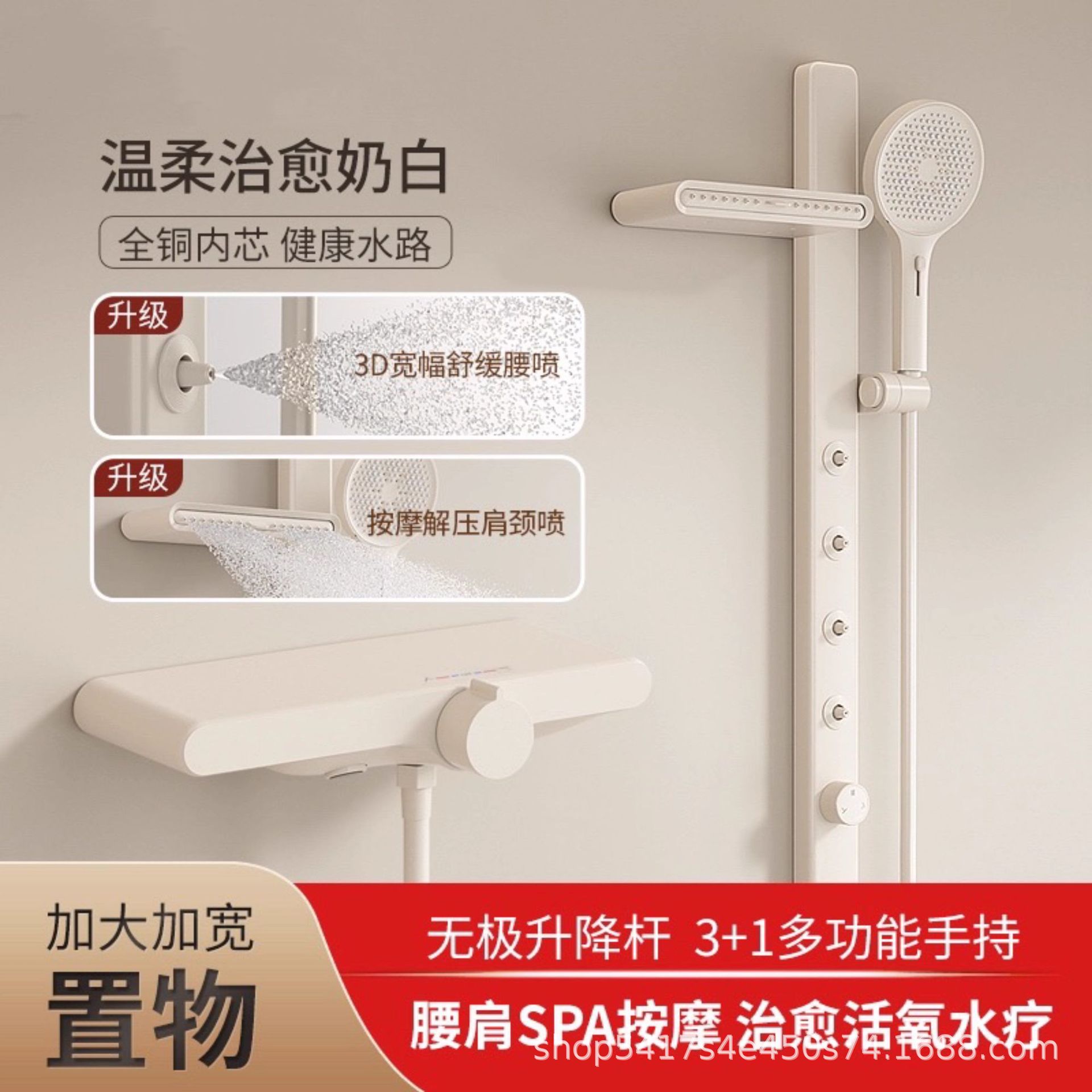 一体新知能恒温シャワーセットウエストスプレー全銅家庭用浴室増圧ミルク白入浴器