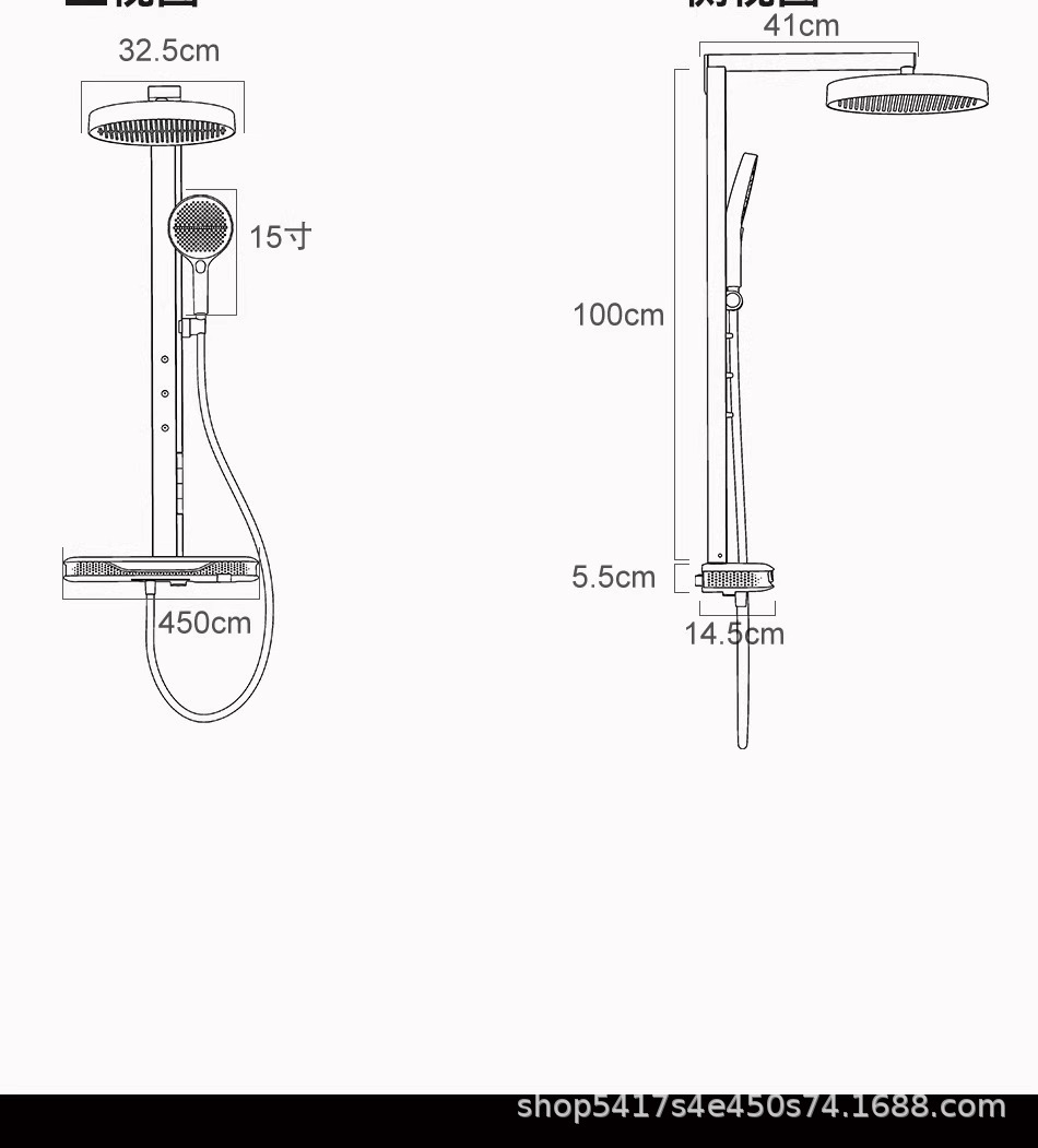 超大瀑布出水淋浴屏花洒套装家用浴室增压挂墙黑色大淋浴花洒套装