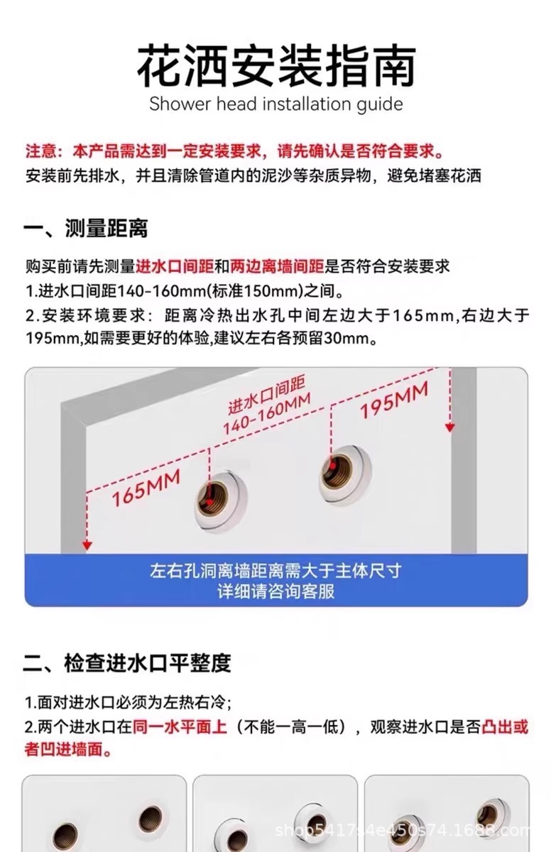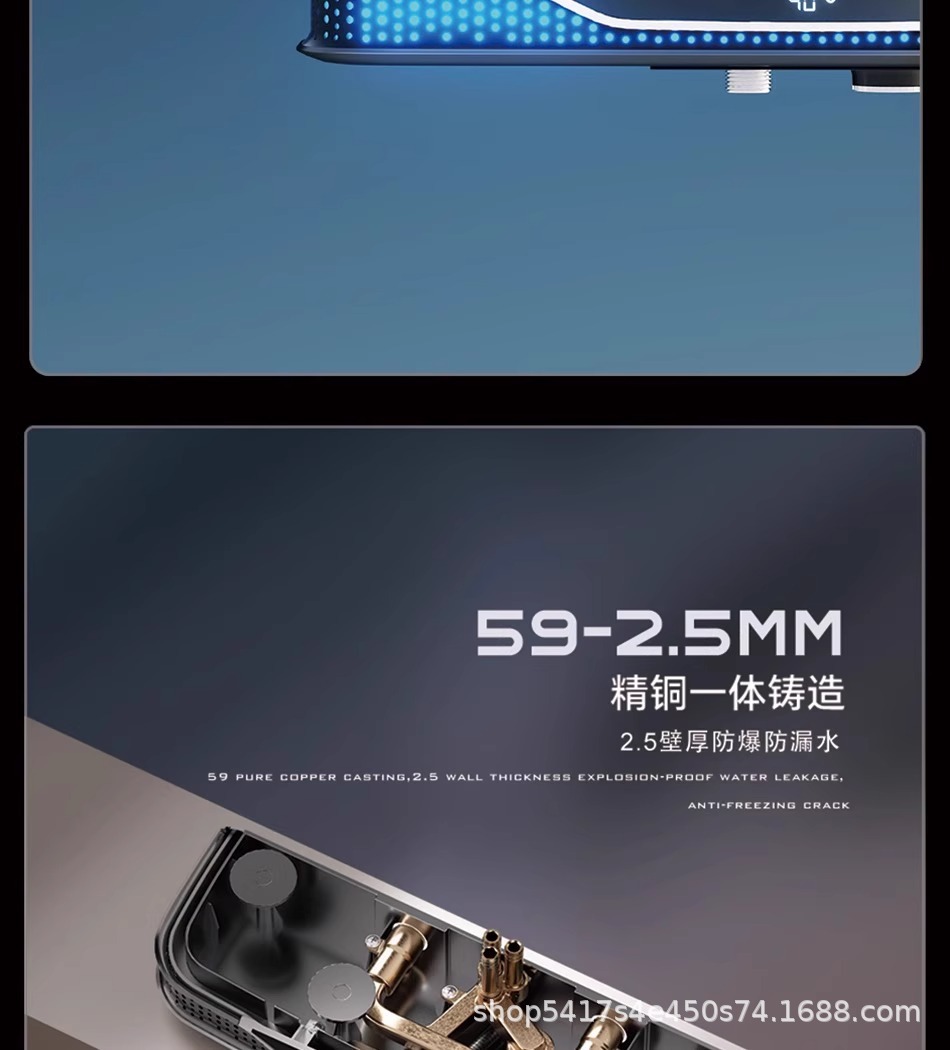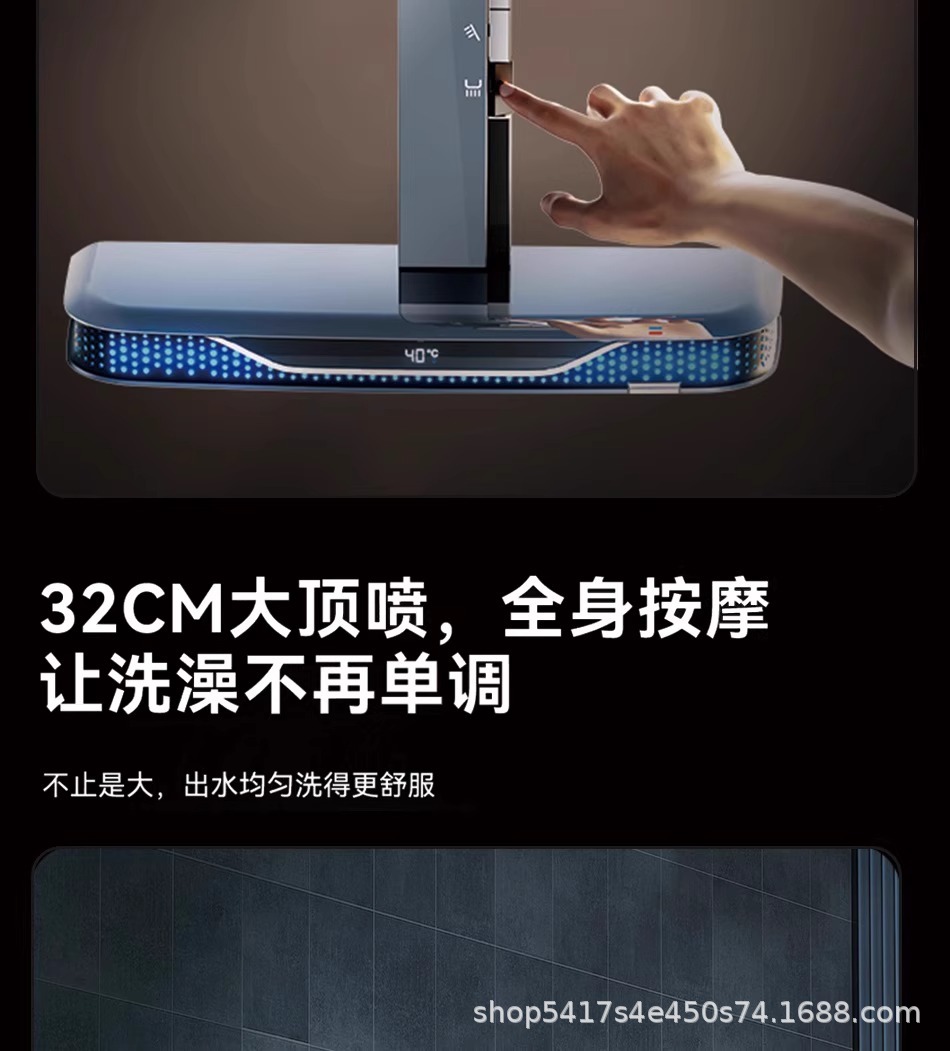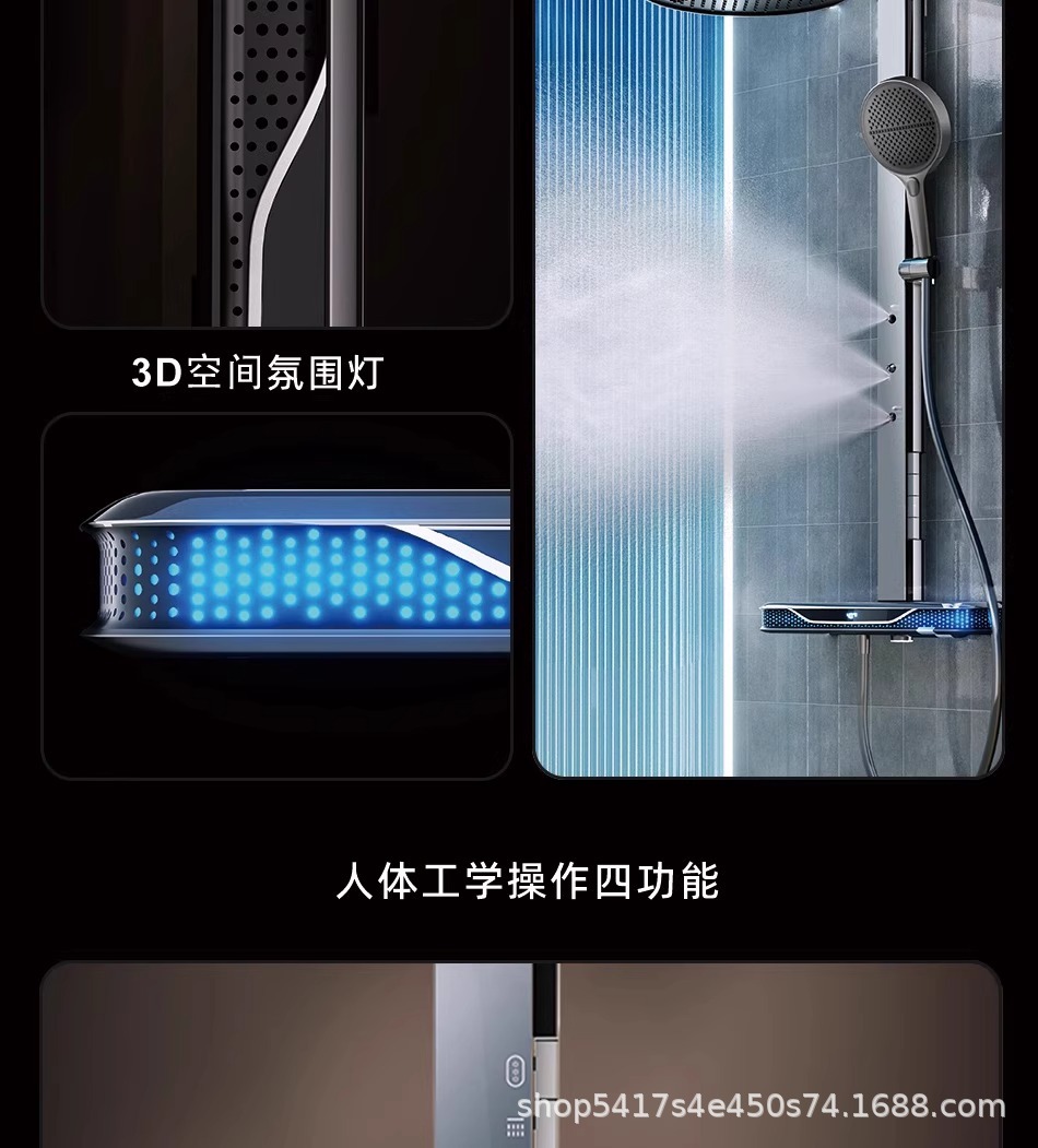 全铜花洒淋浴套装整套卫生间贴墙置物架浴室冷热增压数显淋浴器