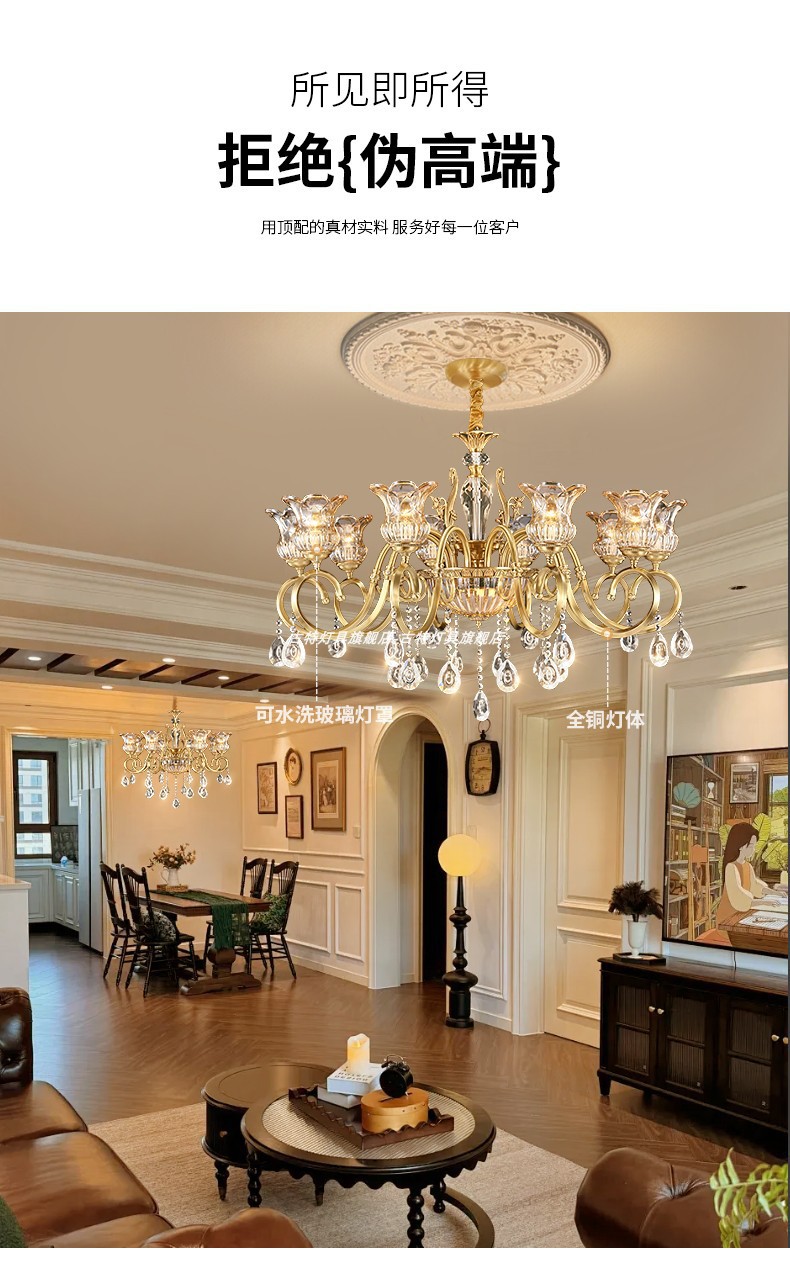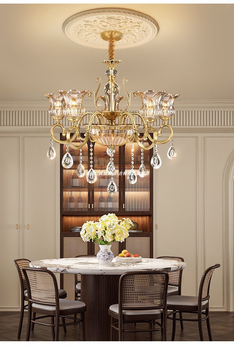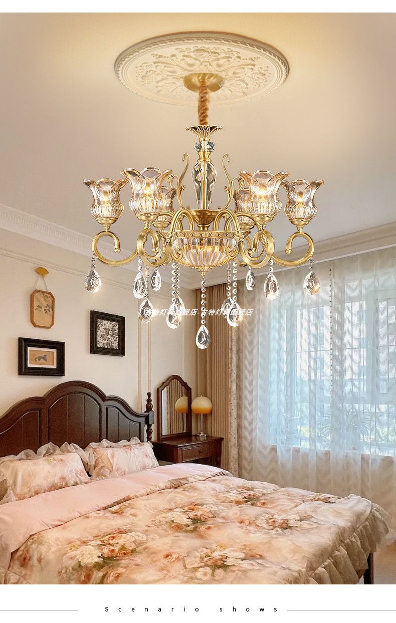 全銅アメリカンライト高級リビングルームランプダイニングルーム寝室北欧モダン高級クリスタルレトロデザイナーランプ
