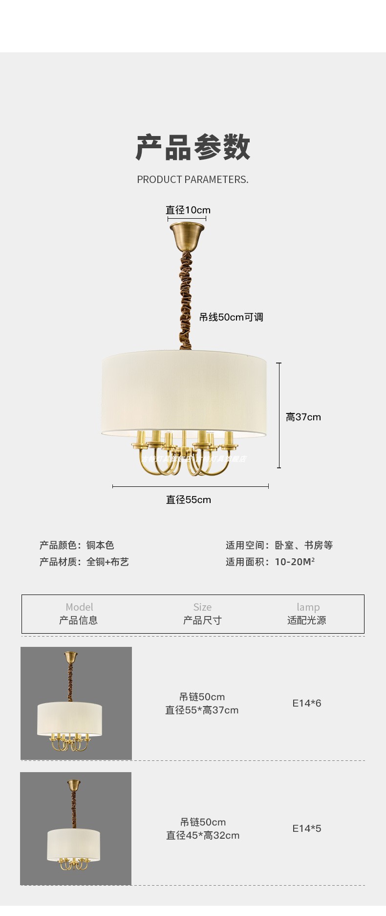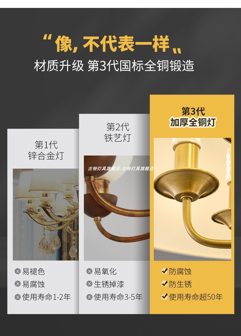 ライトの色 【5つのランプヘッドを備えたフル銅シャンデリア】直径45 *高さ32CM高演色オリジナル3色目の保護,【6つのランプヘッドを備えたフル銅シャンデリア】直径55 *高さ37CM高演色オリジナル3色目の保護