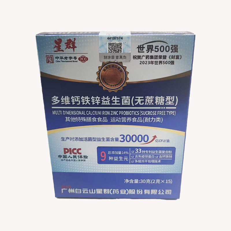 広州白雲山星群多維カルシウム鉄亜鉛プロバイオティクス無糖タイプ2g*15袋活性プロバイオティクス添加