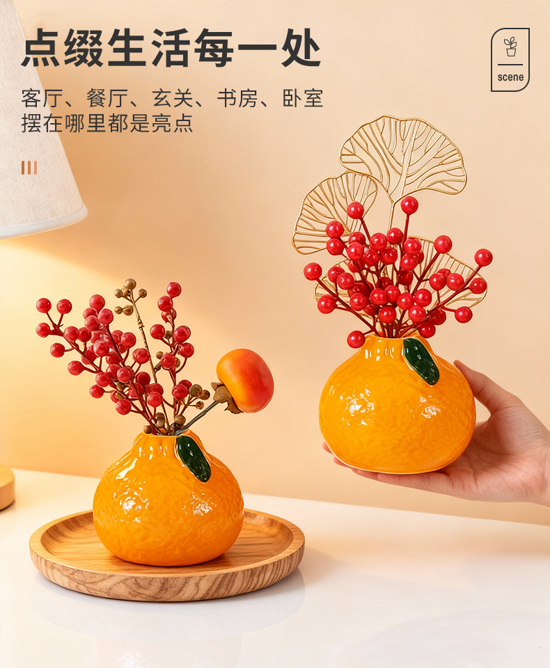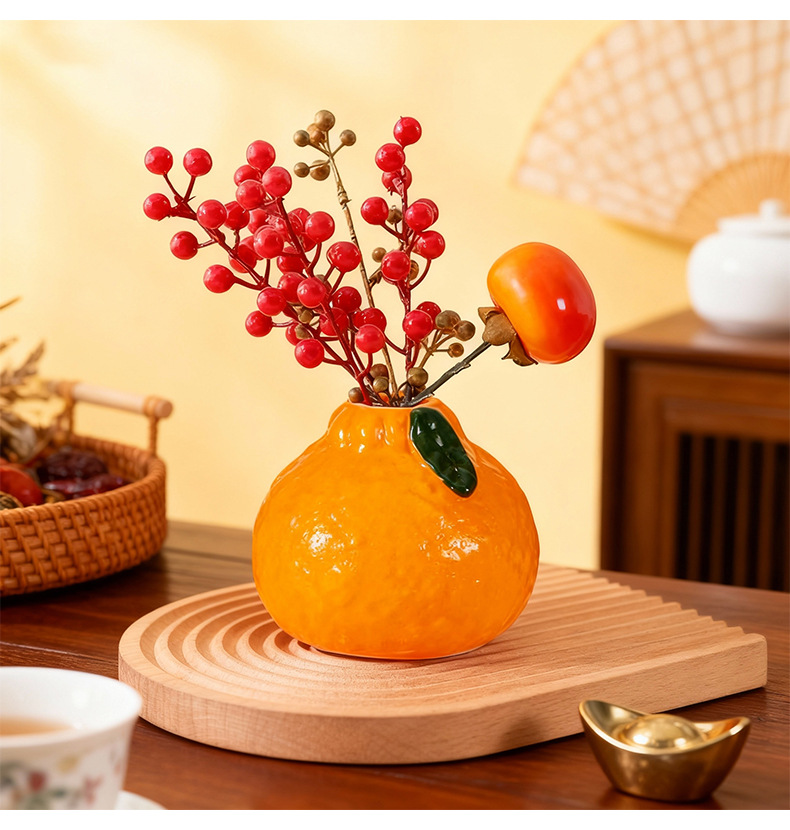 大吉大利陶瓷橘子花瓶养水绿箩水培花盆家具桌摆装饰摆件桔子水果