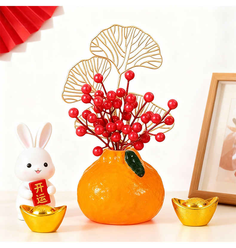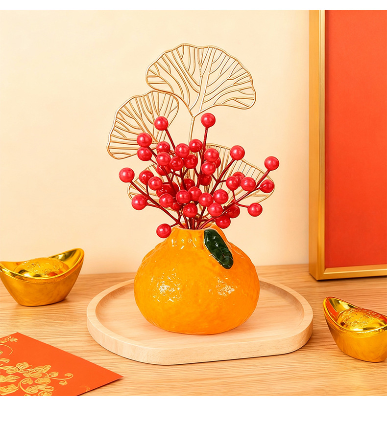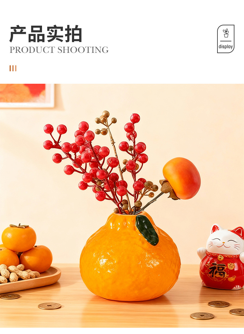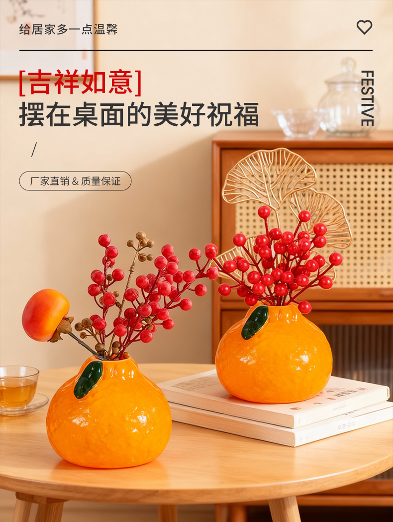 喜庆装饰摆件花瓶年货花盆创意桔子花瓶橙子水果形状塑料花瓶花盆