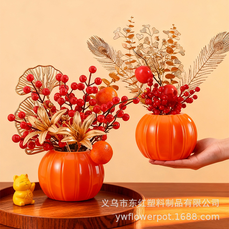 乔迁之喜家居装饰创意塑料花盆南瓜形状仿真花瓶喜庆装扮节庆水培