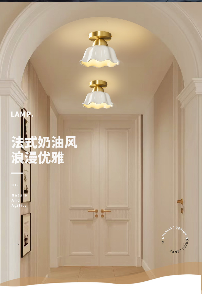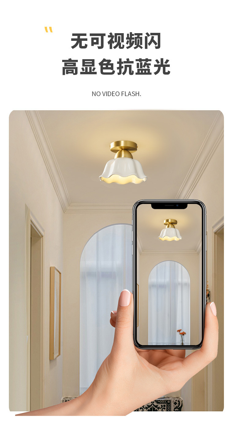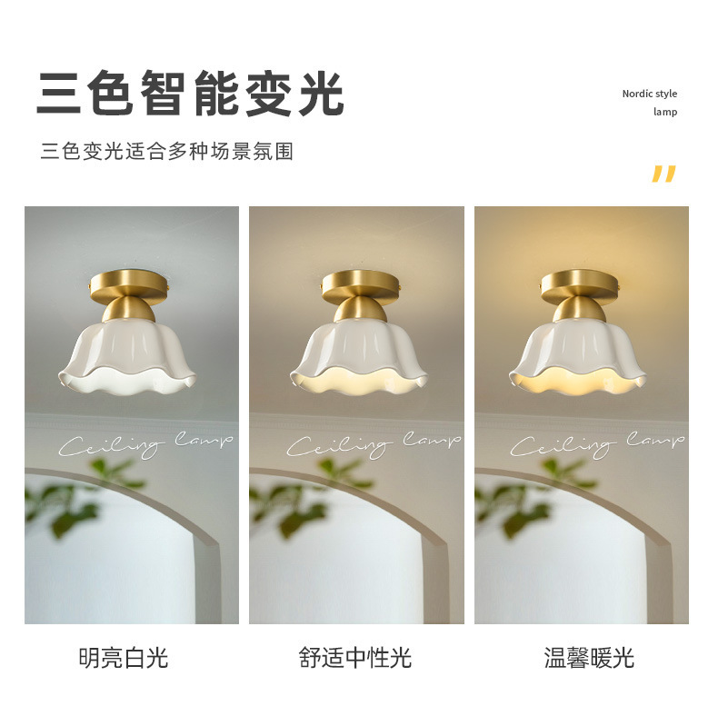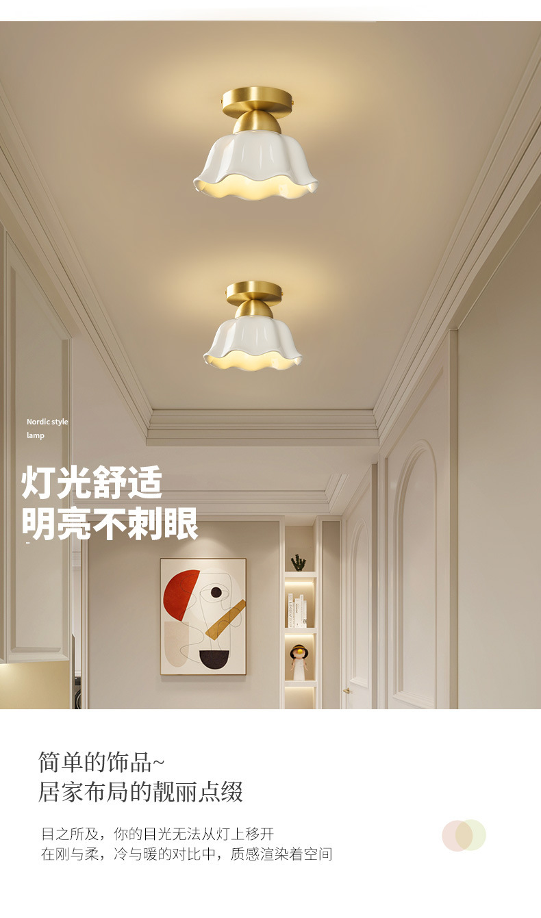 全銅中世スタイルのリビングルーム通路ライトセラミックフレンチクリームクリエイティブ玄関廊下クロークLED目の保護ライト
