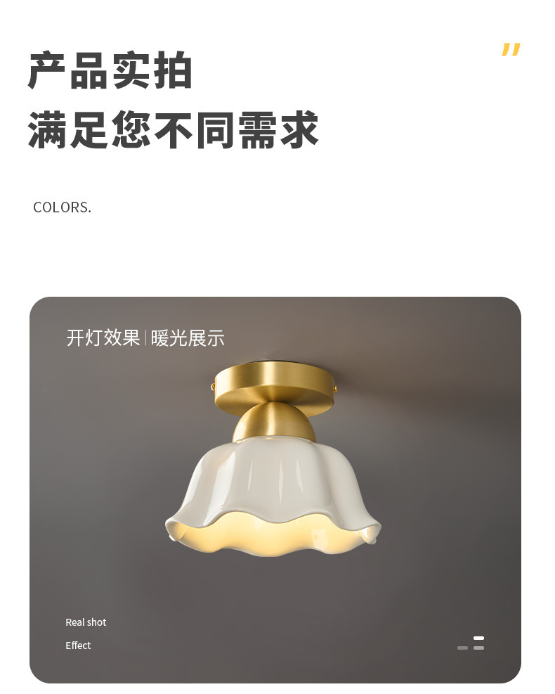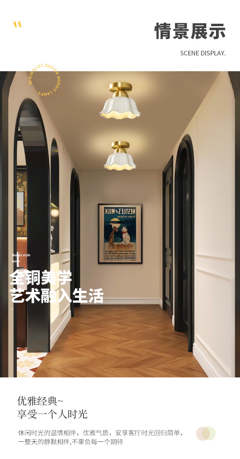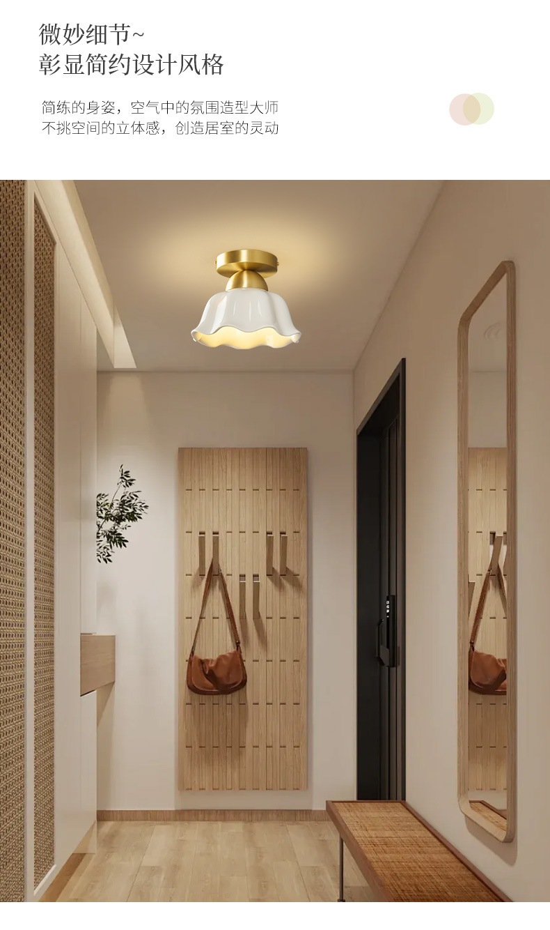 全銅中世スタイルのリビングルーム通路ライトセラミックフレンチクリームクリエイティブ玄関廊下クロークLED目の保護ライト