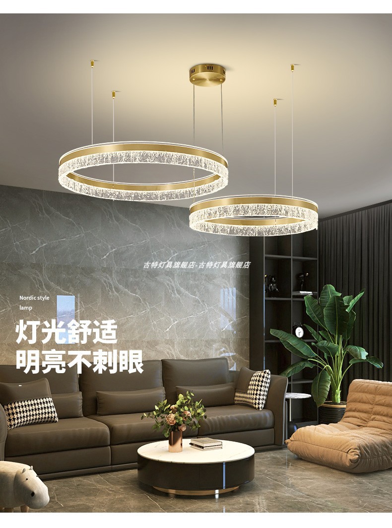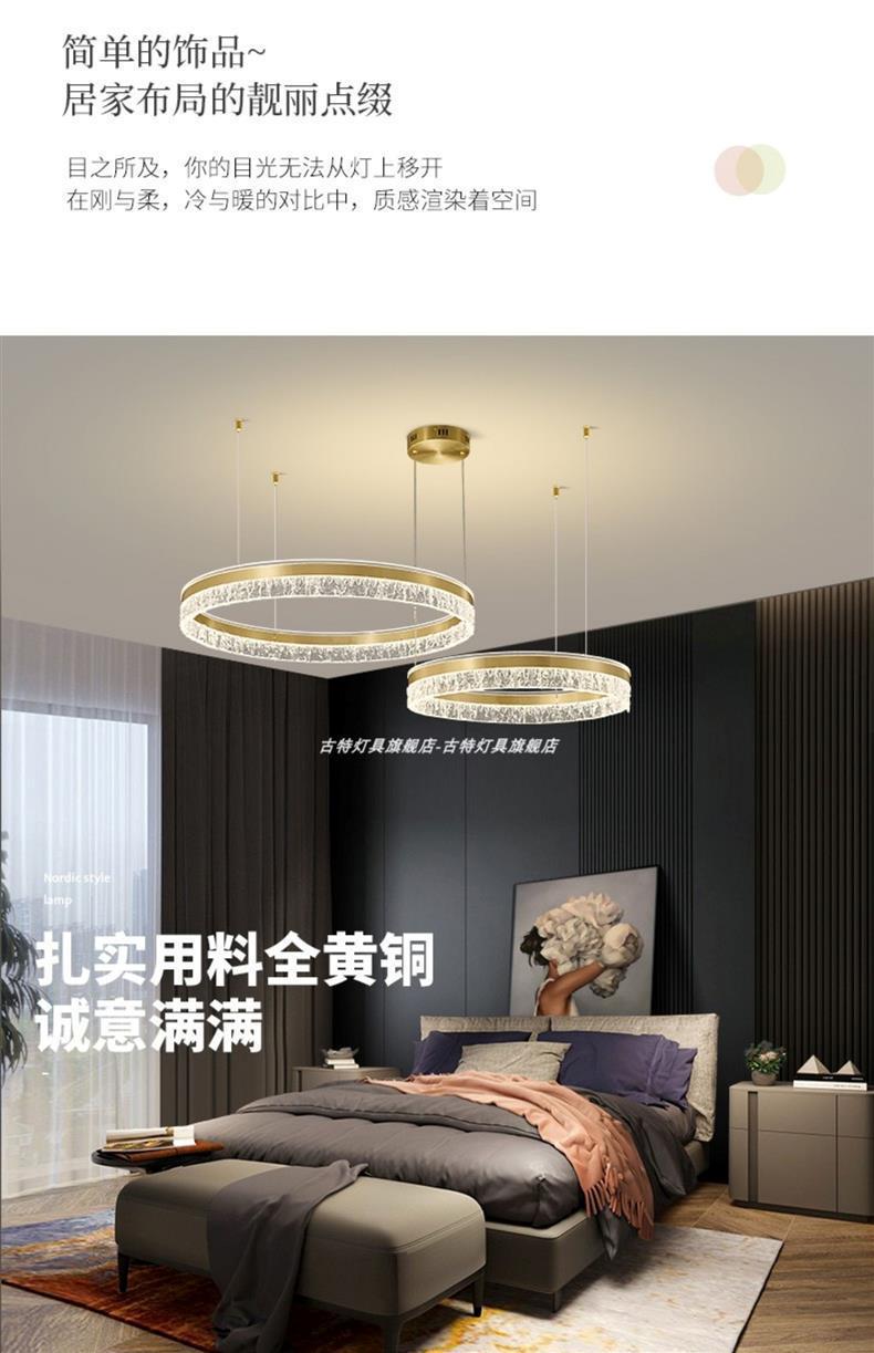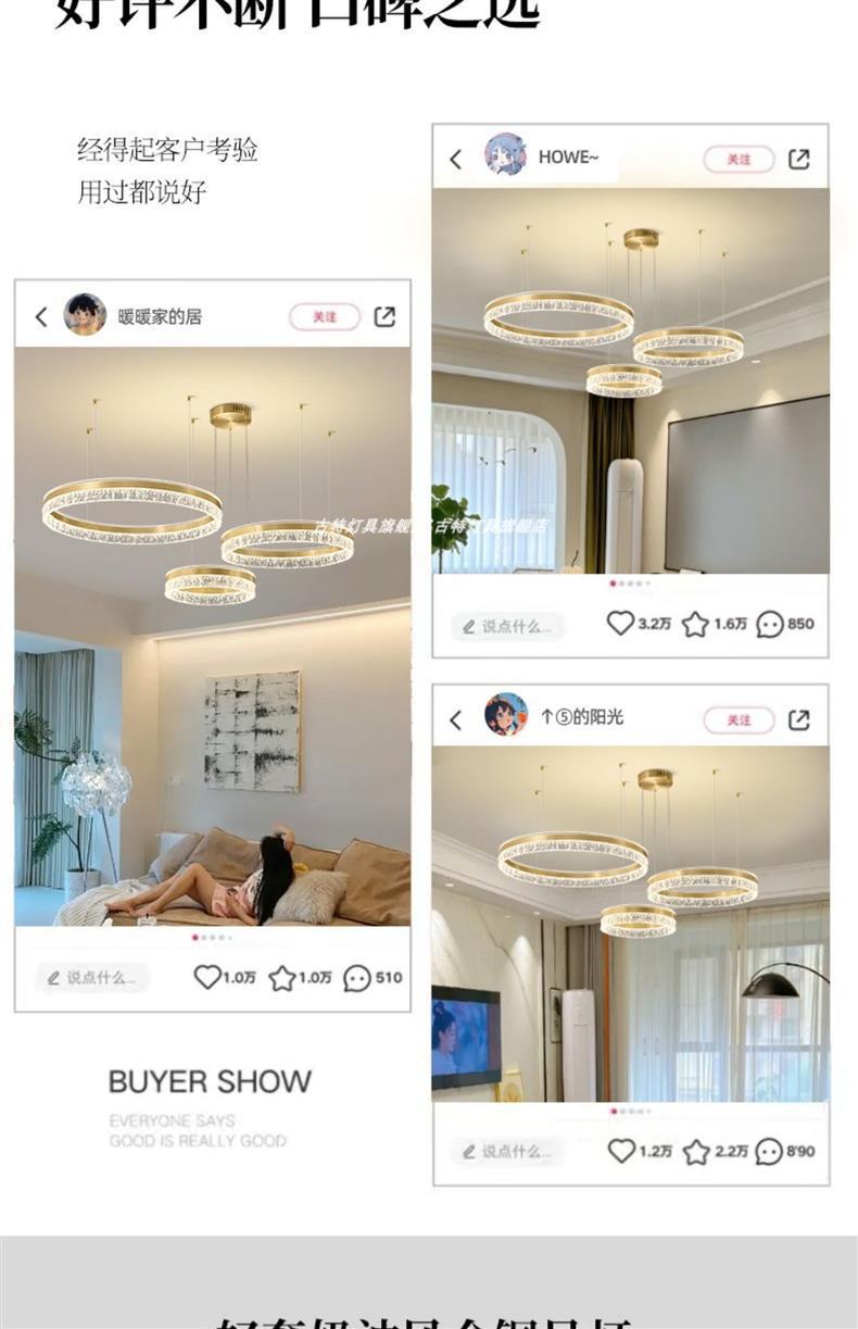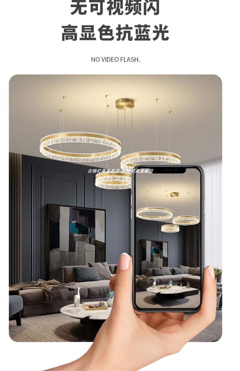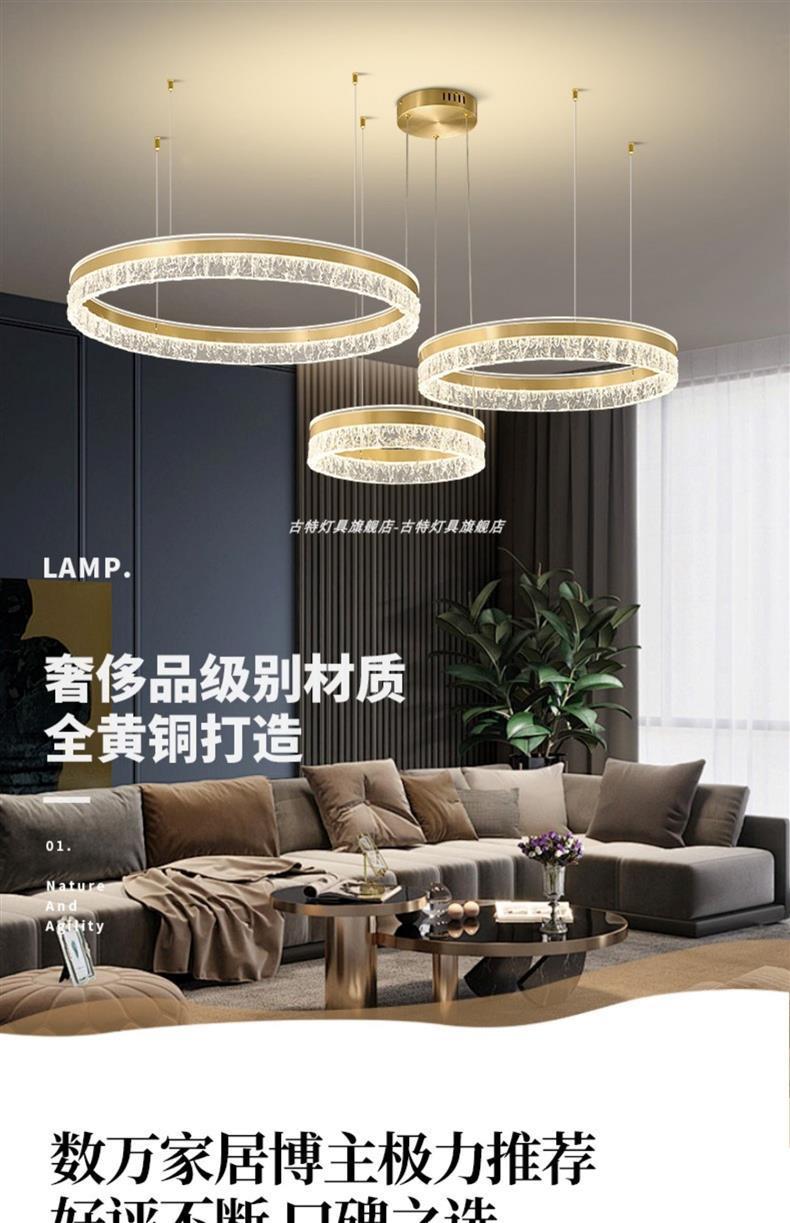 全銅フレンチミッドセンチュリーアメリカンレトロリビングルームシャンデリア平行マルチリングダイニングルーム寝室書斎スマート目の保護ランプ