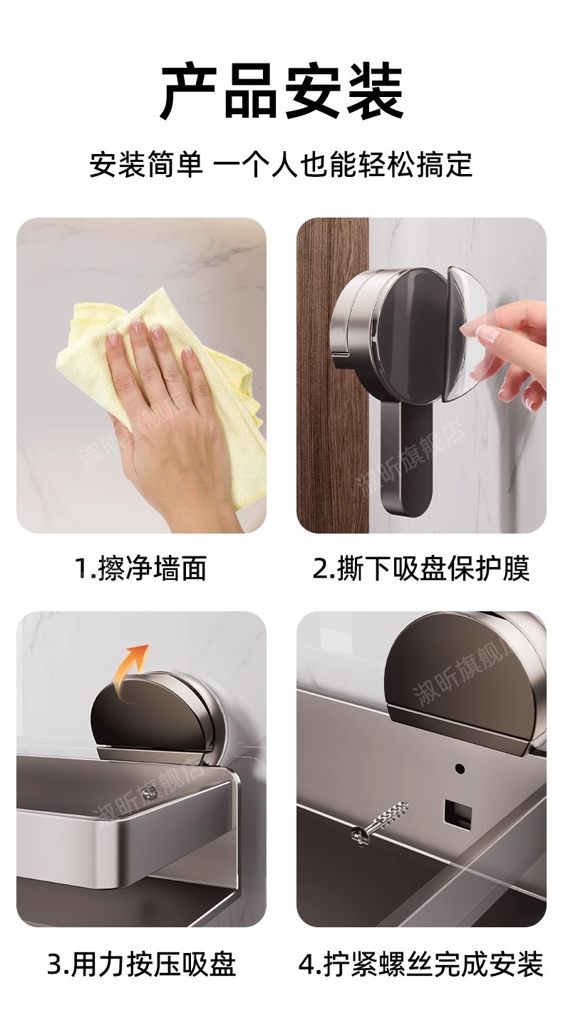 浴室置物架吸盘式加高壁挂卫生间洗漱台免打孔镜前洗手间墙上收纳