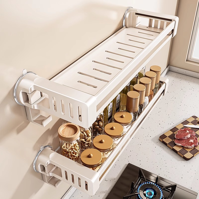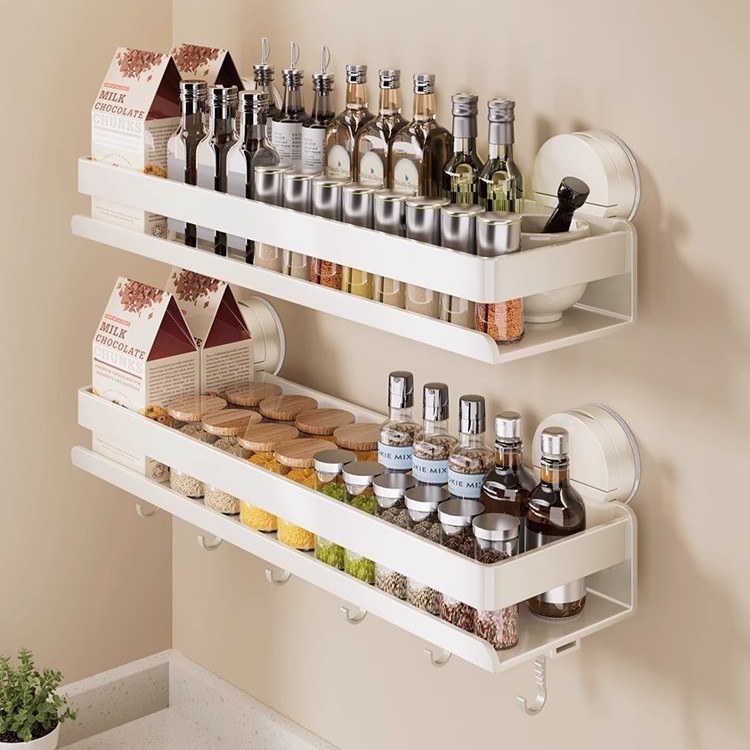クリームスタイル吸盤キッチン収納ラック多機能スパイスラック壁掛けスパイスラックパンチフリー家庭用収納