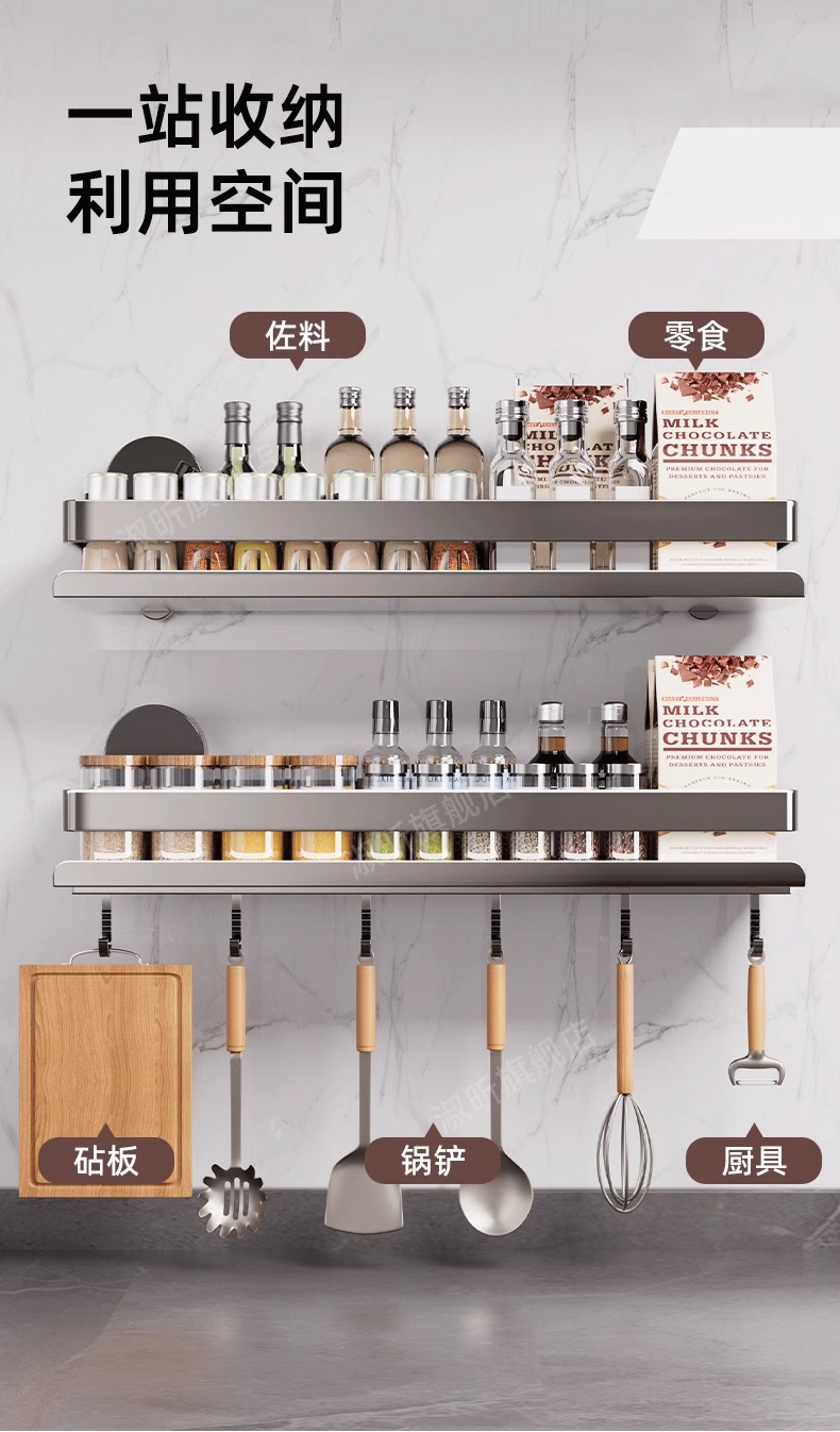 キッチン棚調味料缶収納棚壁に穴を開けない壁掛け式家庭用多機能棚