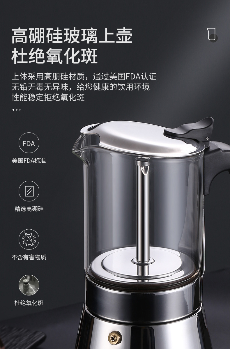 法圧ポット304ステンレス高ホウ素シリコンガラス法圧ポットコーヒー打乳泡茶フィルターメーカー