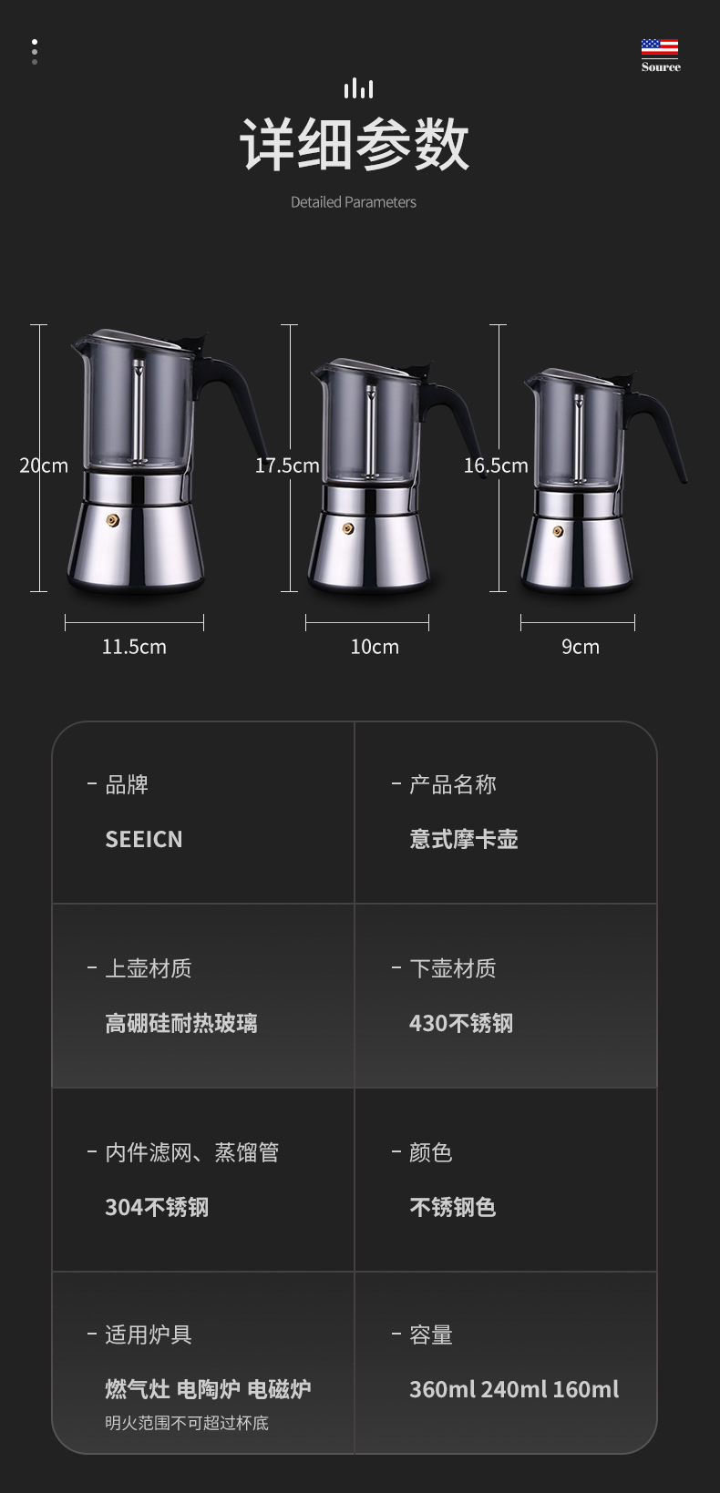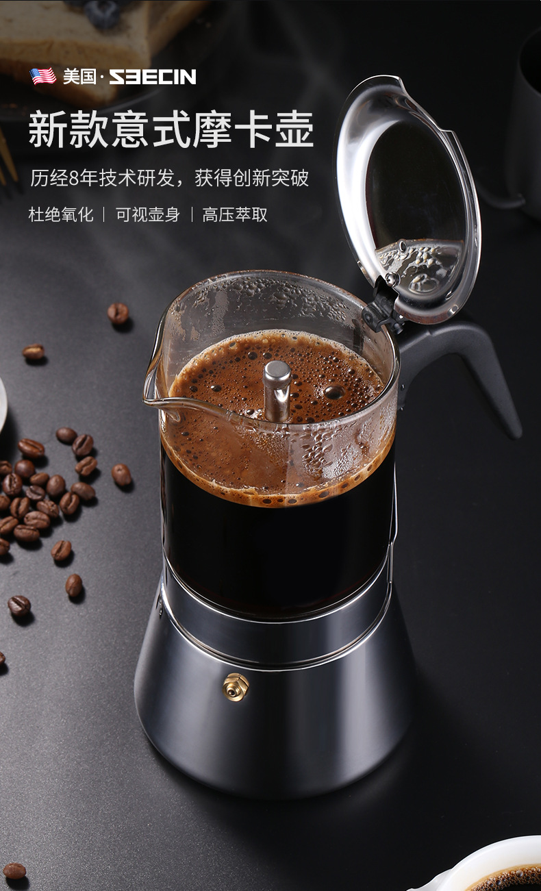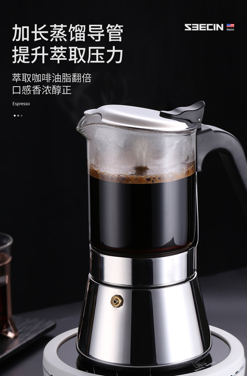 Seecinクロスボーダーモカポット家庭用ハンドプレスコーヒーポットコーヒー器具高ホウケイ酸ガラスポータブル