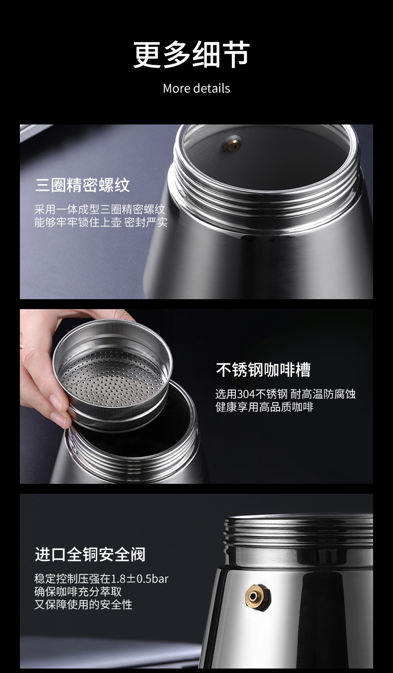 ヨーロッパ式キッチン316ステンレスモカポット二重真空ポット家庭用大容量コーヒーポット卸売り