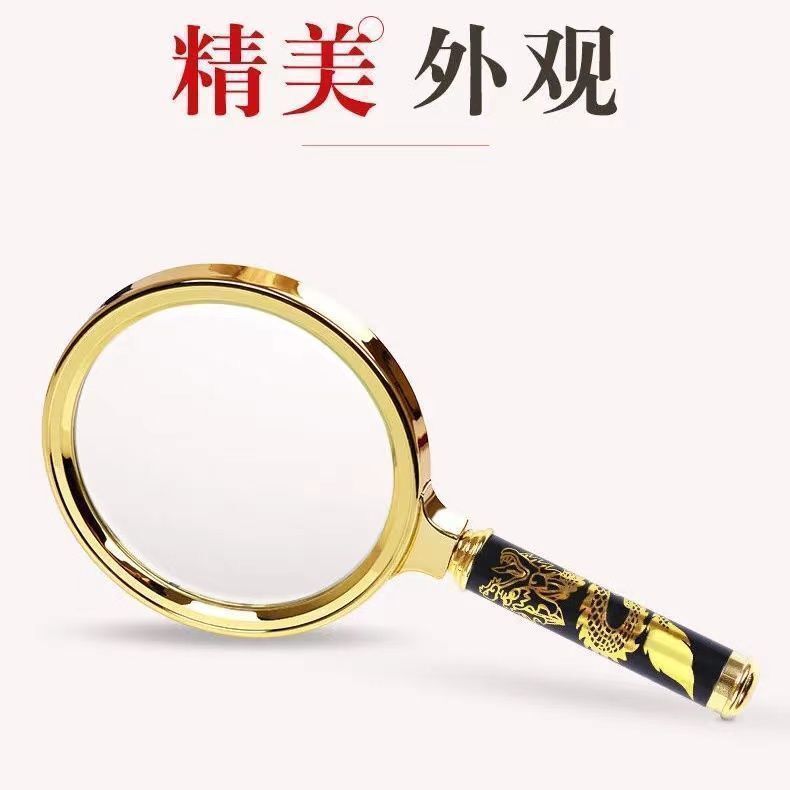 土豪金色龍紋ハンドル老人読書本100mm夜市は縁日10倍に拡大鏡を持っている