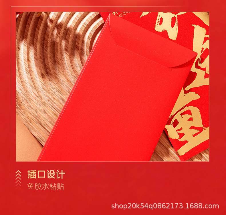 クリエイティブな富と幸運の赤い封筒バッグ、パーソナライズされた千元の大きな赤い封筒、赤い背景とホットスタンピング、ハイエンドのギフト卸売