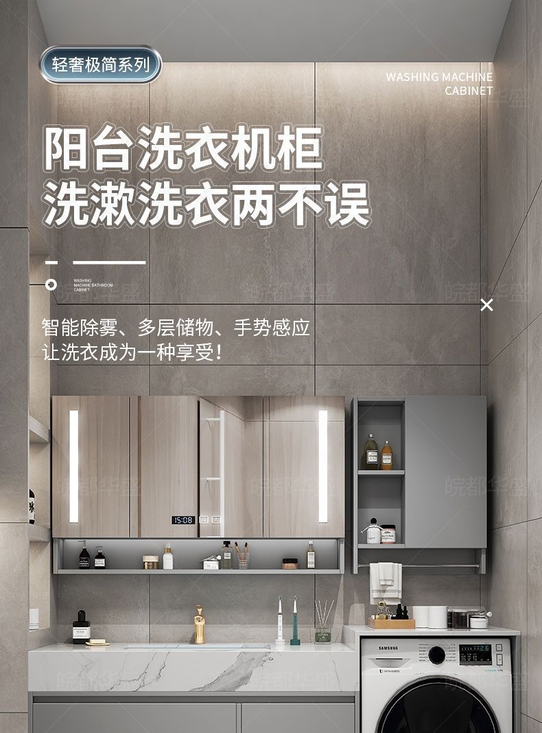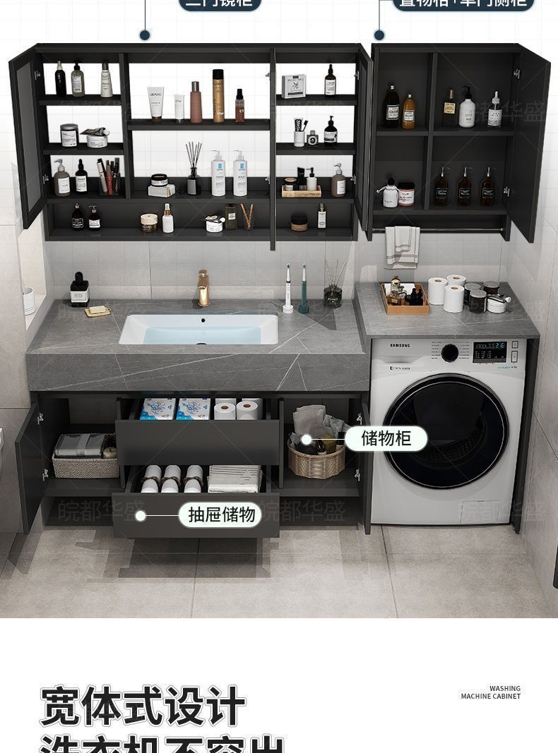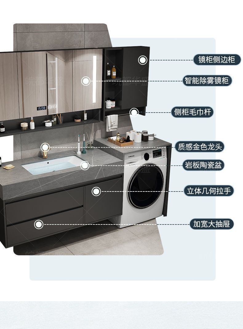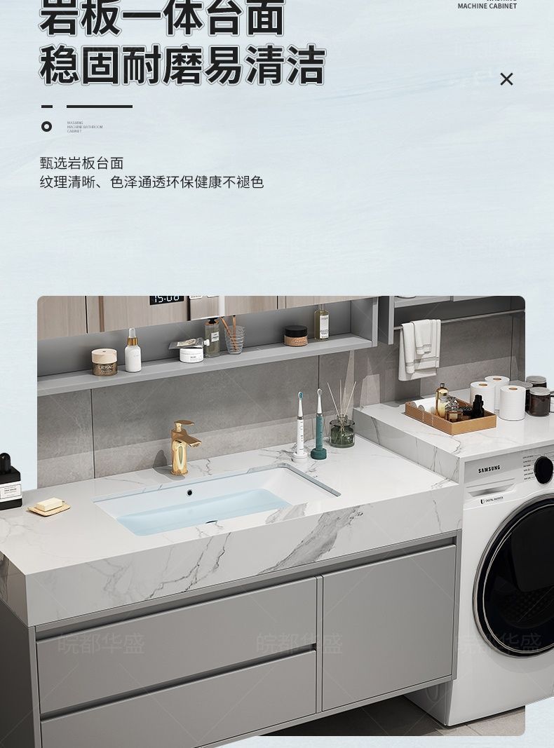 岩板热弯可丽耐一体盆洗衣机柜组合浴室柜卫生间洗手阳台洗脸盆池