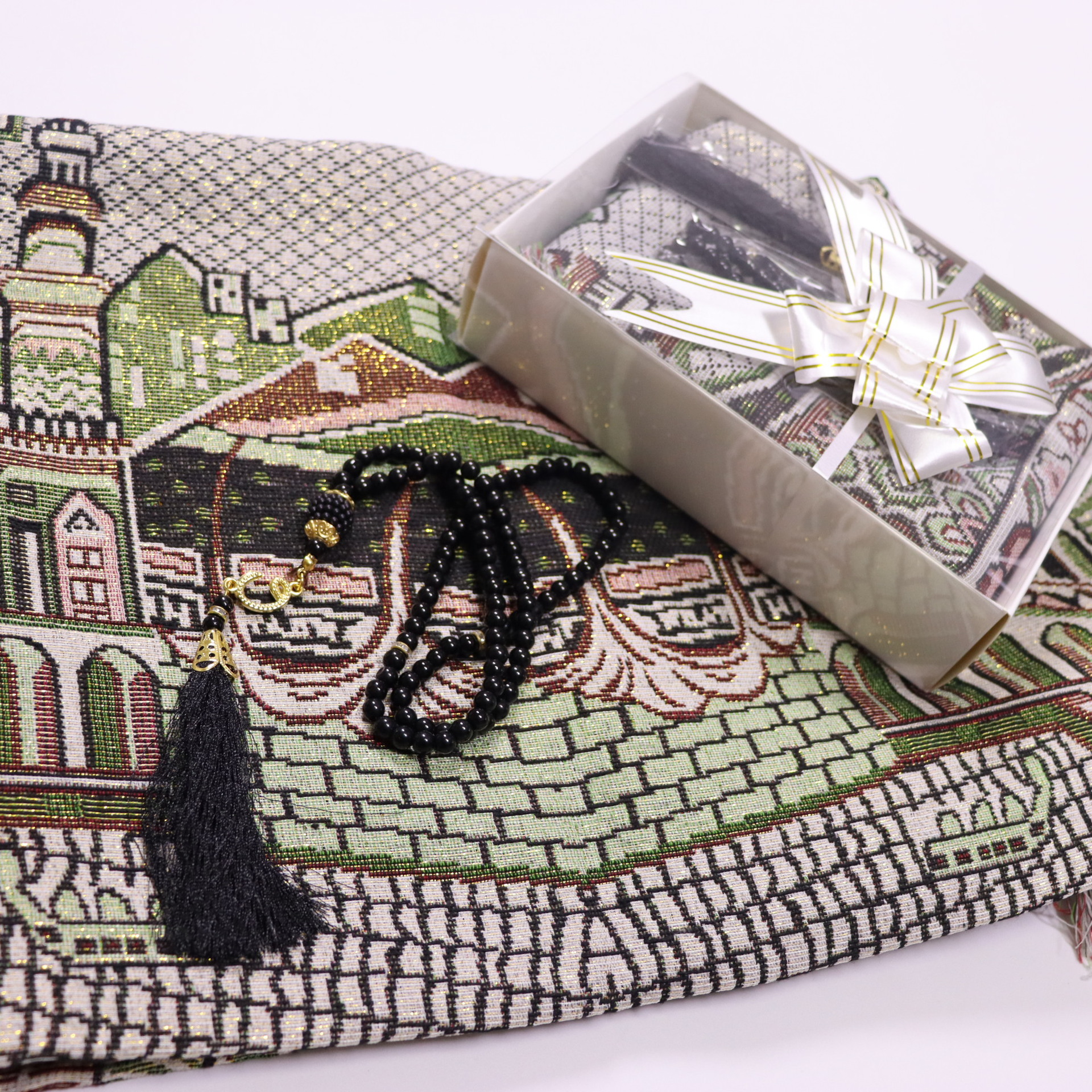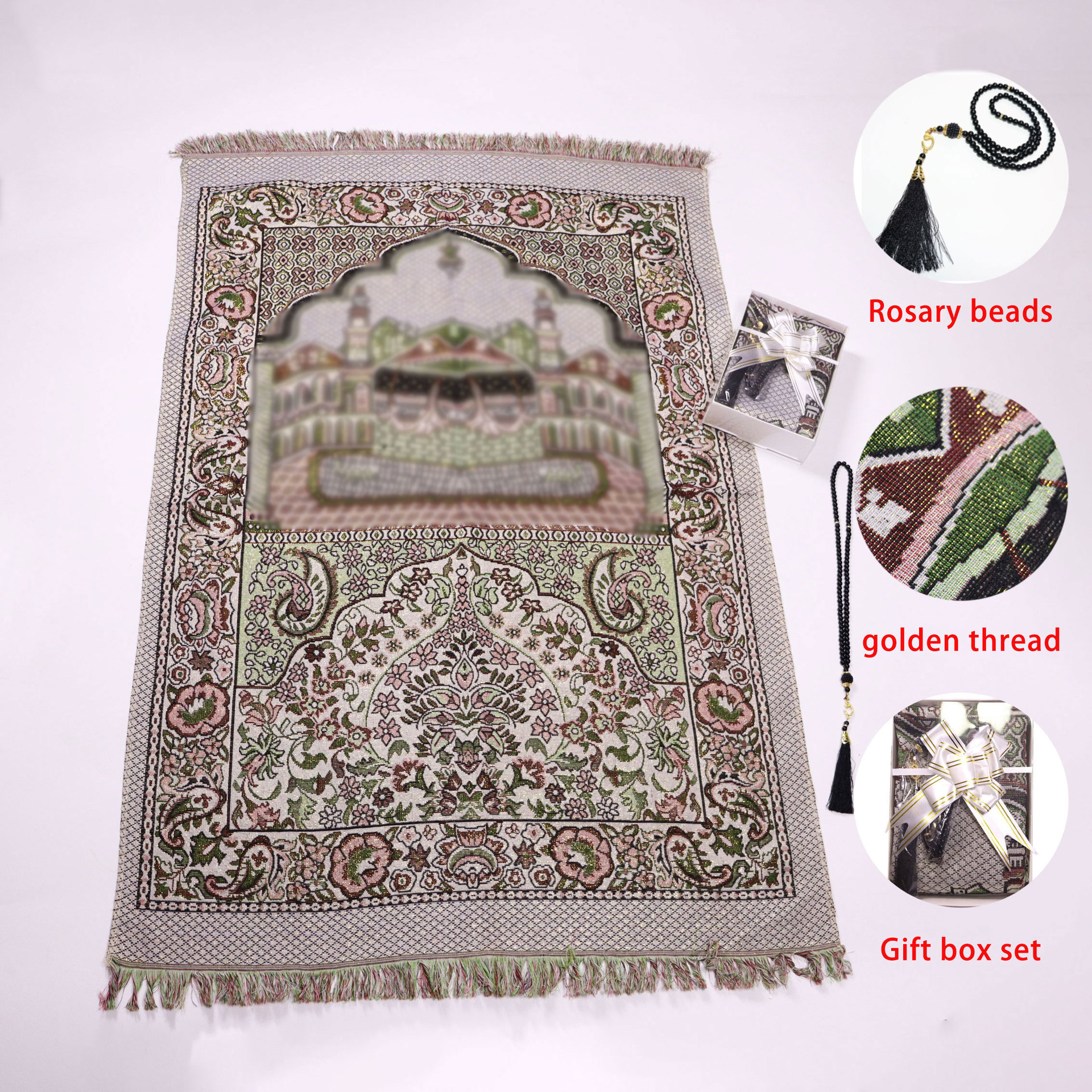 国境を越えた人気の白いアラビア絨毯スタイルのシェニール織りブランケットギフトボックスブランケットロザリオセット中東