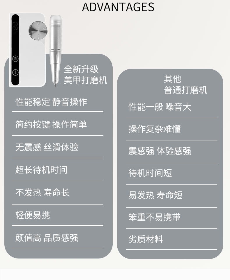 新款充电式美甲打磨机45档便携式电动手柄卸甲机去死皮美甲打磨机