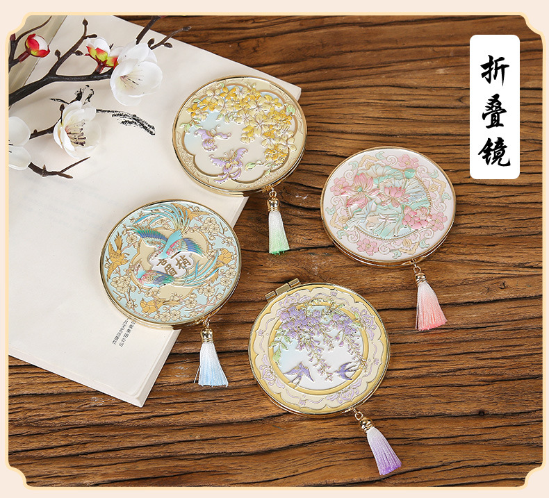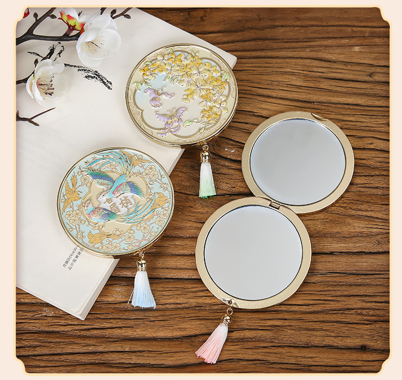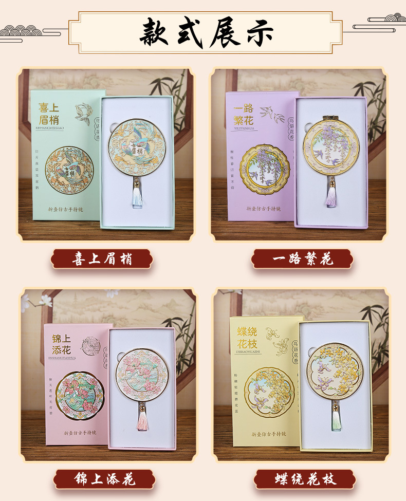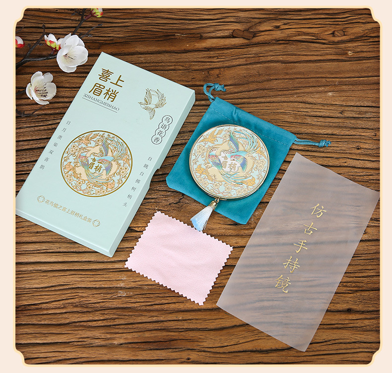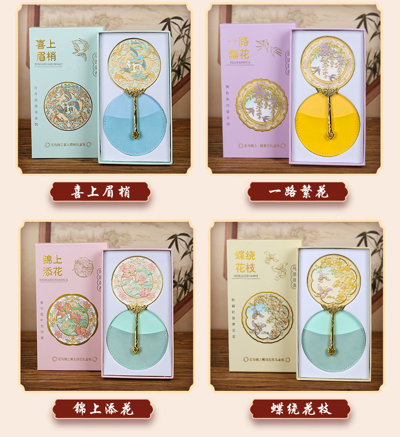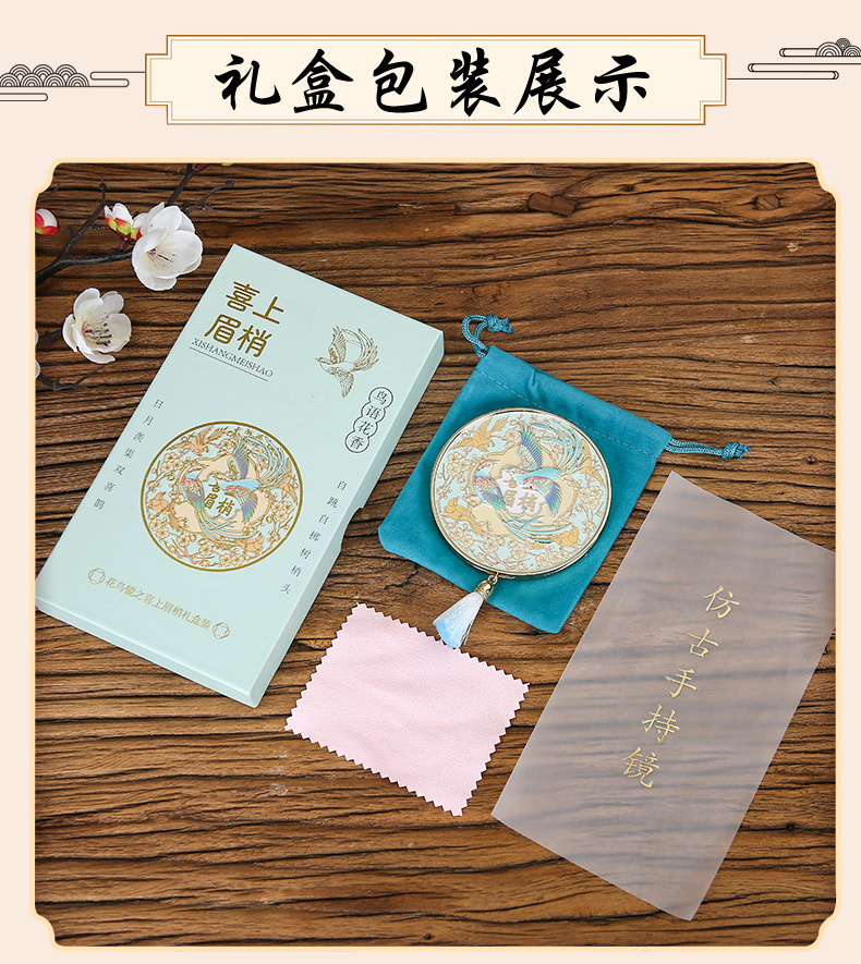 古風鏡携帯化粧鏡金属鏡文創手持ち鏡プレゼント旅行記念品友達プレゼント