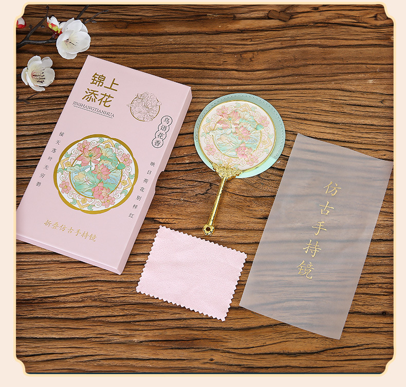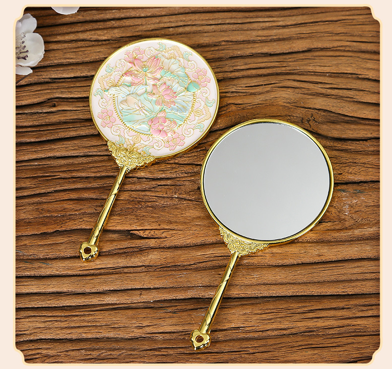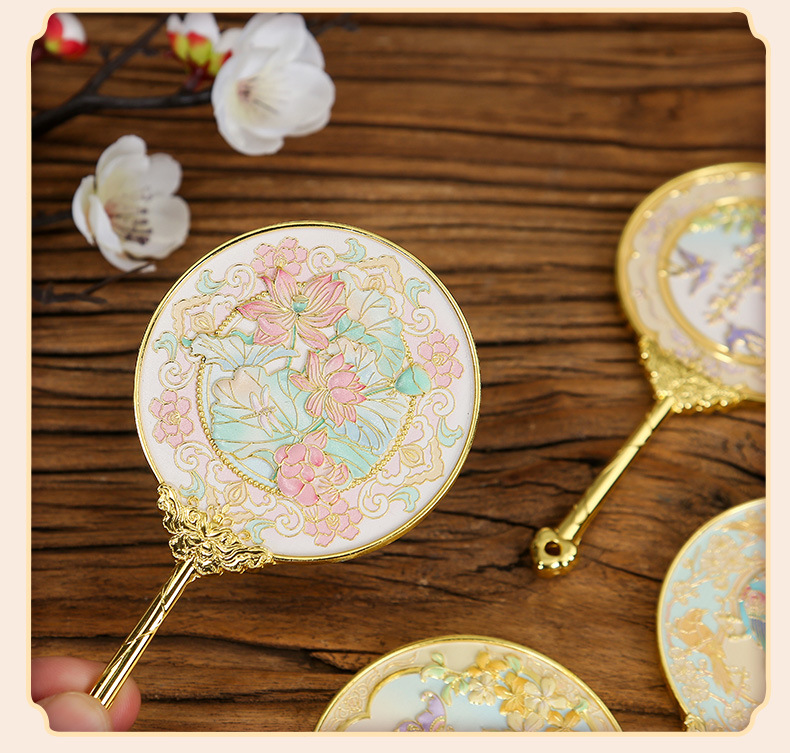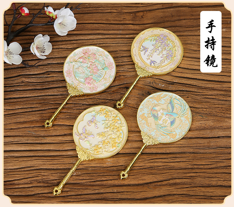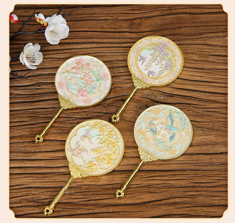 文化的で創造的な中国風の手持ちミラー、古典的なパターン、電気メッキの旅行のお土産、金メッキのポータブル折りたたみ小型ミラー卸売