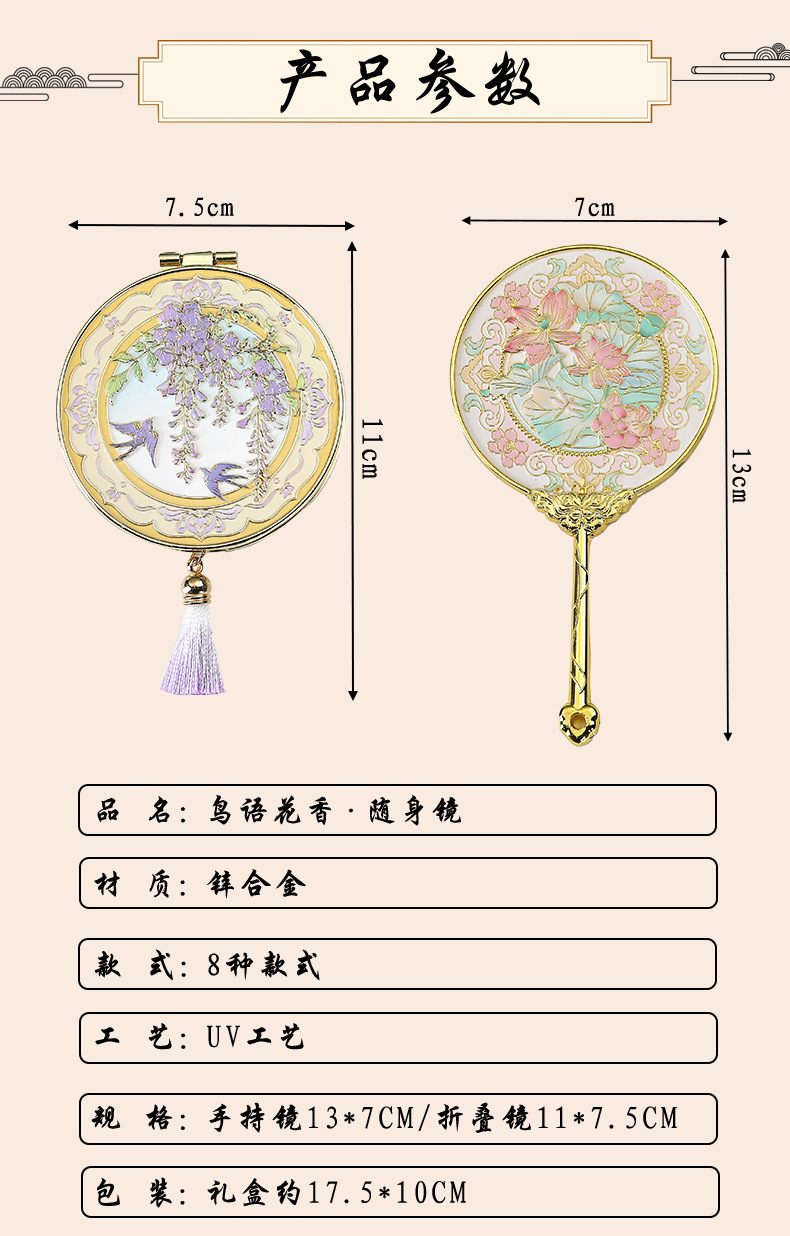 国風古風は化粧鏡を持って、創意文創小鏡円形旅行のお土産を持ってプレゼントを注文します。