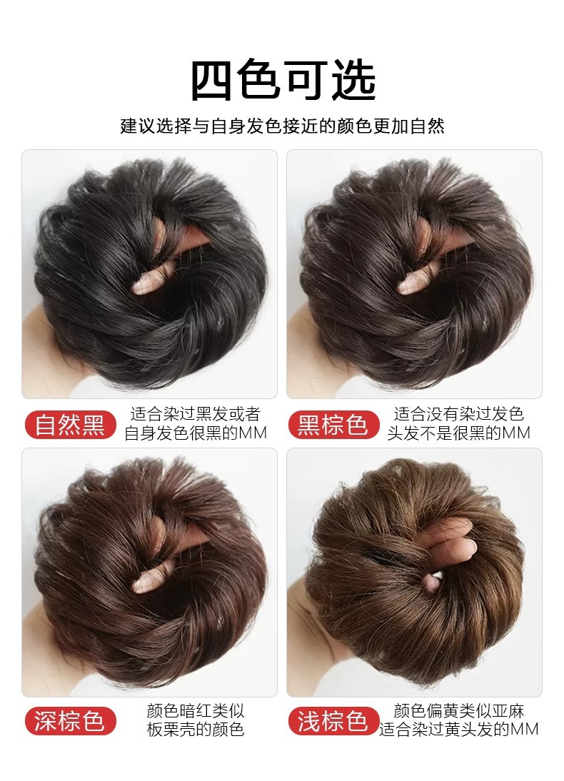 中華巻き毛お団子ヘア【ナチュラルブラック】ヘアゴムスタイル,中華巻き毛ボールヘア【ブラウンブラック】ヘアゴムスタイル,中華巻き毛ボールヘア【ライトブラウン】ヘアゴムスタイル,中華巻き毛ボールヘア【ダークブラウン】ヘアゴム風