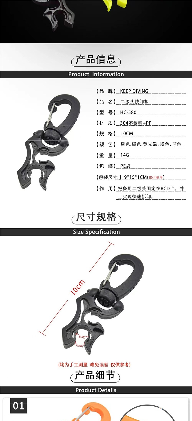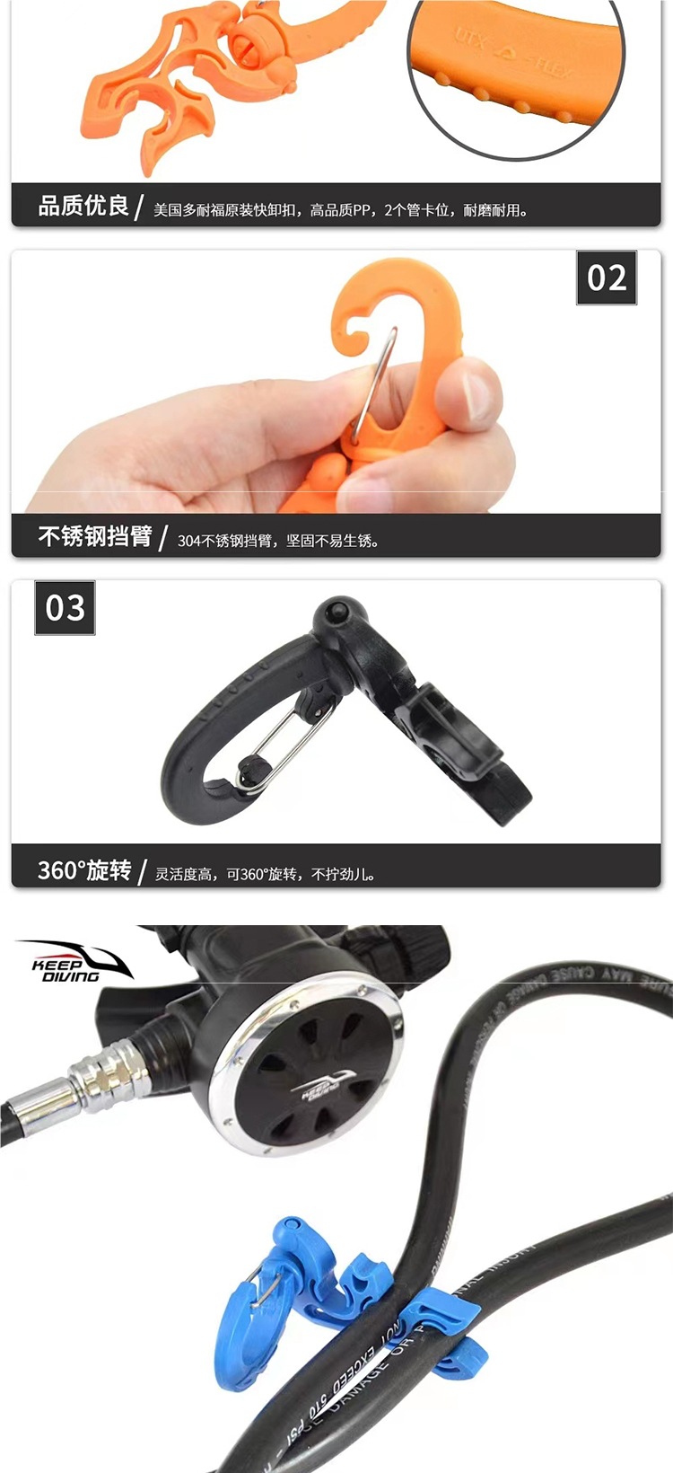 ダイビングセカンドヘッドクイックリリースバックルBCスペアセカンドヘッド呼吸レギュレーターチューブクランプBCDホースフックアクセサリー