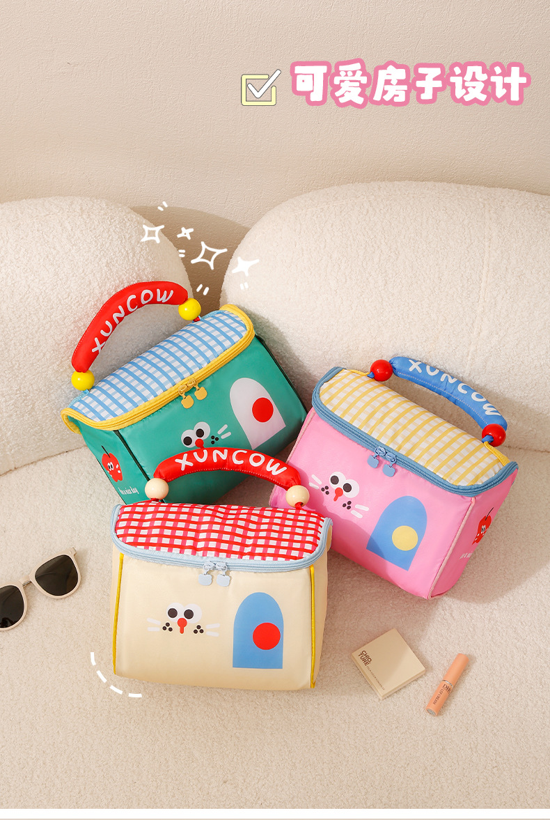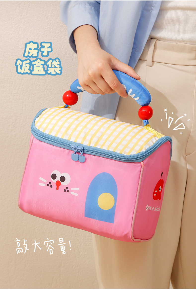 かわいいクリエイティブな小さな家の断熱ランチボックスバッグ学生オフィスワーカーランチハンドバッグランチバッグポータブル化粧品バッグ