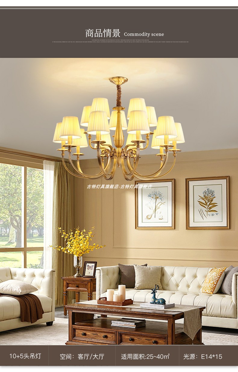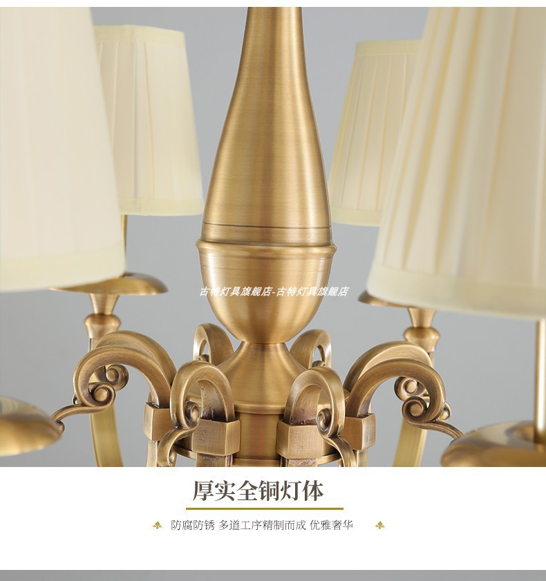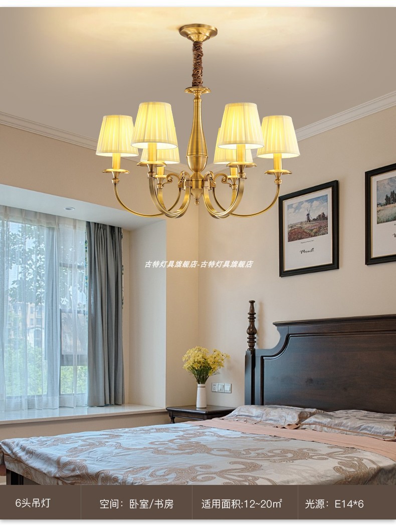 全銅アメリカンミッドセンチュリーフレンチレトロリビングルームシャンデリアハイエンド2025新しいクリームベッドルームアイプロテクションシャンデリア