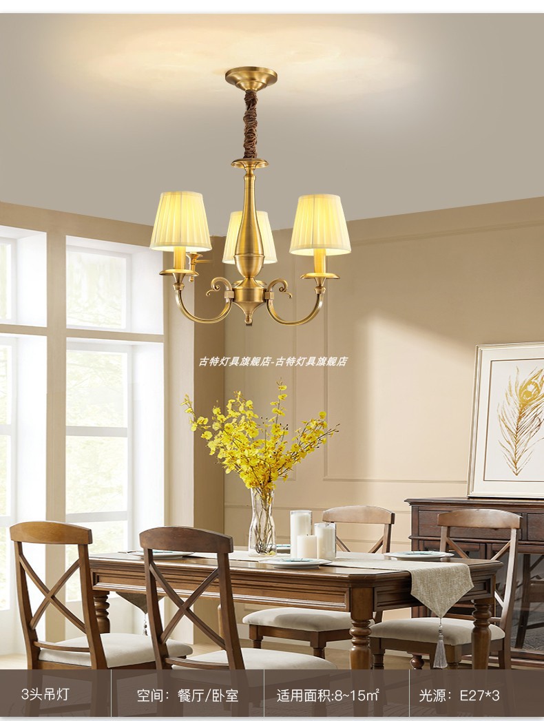 アメリカンライト高級全銅レストランランプシャンデリアバーランプシンプルモダンクリエイティブダイニングルームベッドルームベッドサイドランプ66727