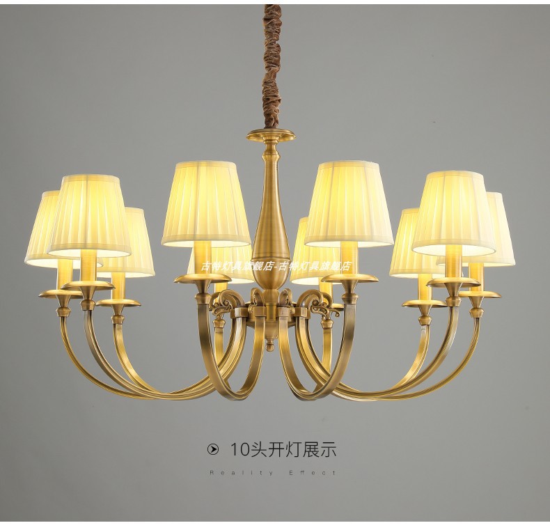二重層全銅シャンデリア生地クリスタル銅照明器具リビングルームダイニングルーム書斎ヨーロッパスタイル LED 照明器具 1742