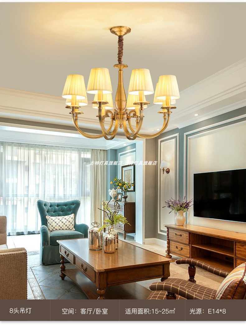 アメリカンレトロな雰囲気のリビングルームランプ、ハイエンドのヨーロピアンスタイルの高級ヴィラ、レストラン、寝室、書斎、クリスタル全銅シャンデリア