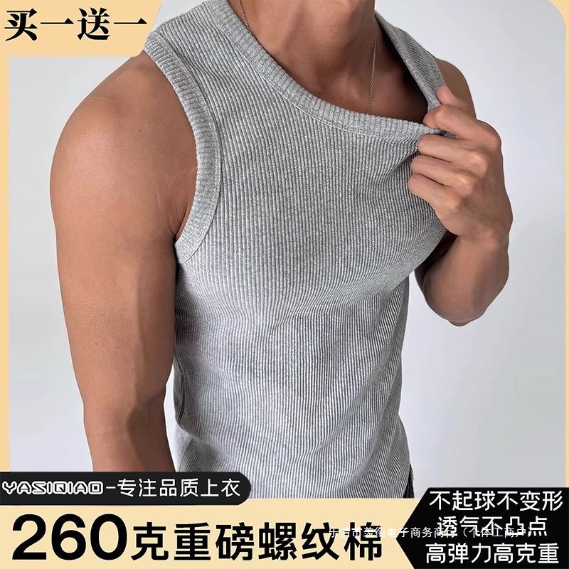 美式粗螺纹健身背心男夏无袖弹力紧身运动外穿汗衫现货宽松型条纹