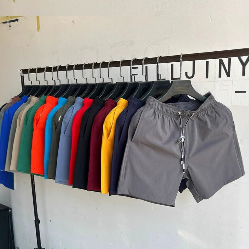 夏用軽量アイスシルクショーツ、男性用膝丈ランニングトレーニングパンツ、速乾ビーチカジュアル七分丈パンツ