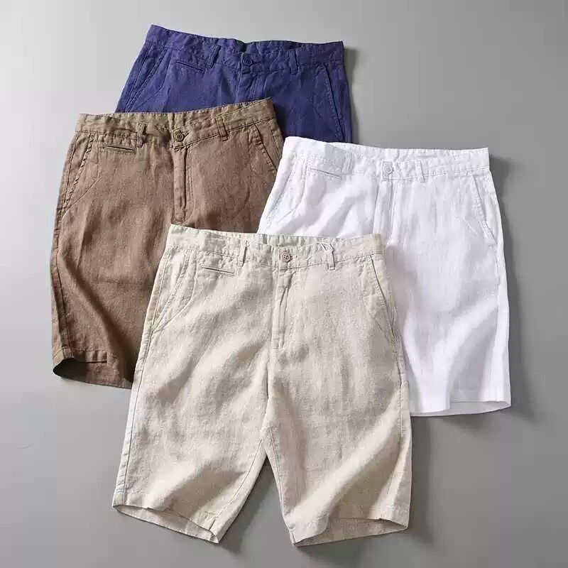 夏の薄い亜麻の短いズボンの男性の直筒のビジネスの通勤スーツの5分のズボンのファッションのブランドのカジュアルな綿麻の男性のズボン