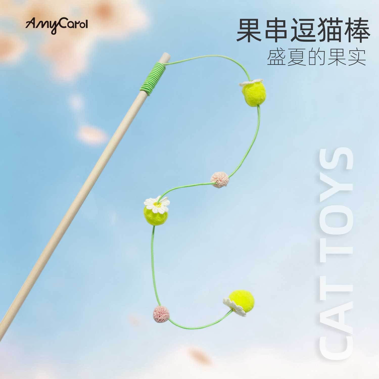 amy carol新品果串逗猫棒手工制作实木杆质量好幼猫玩具消耗体力