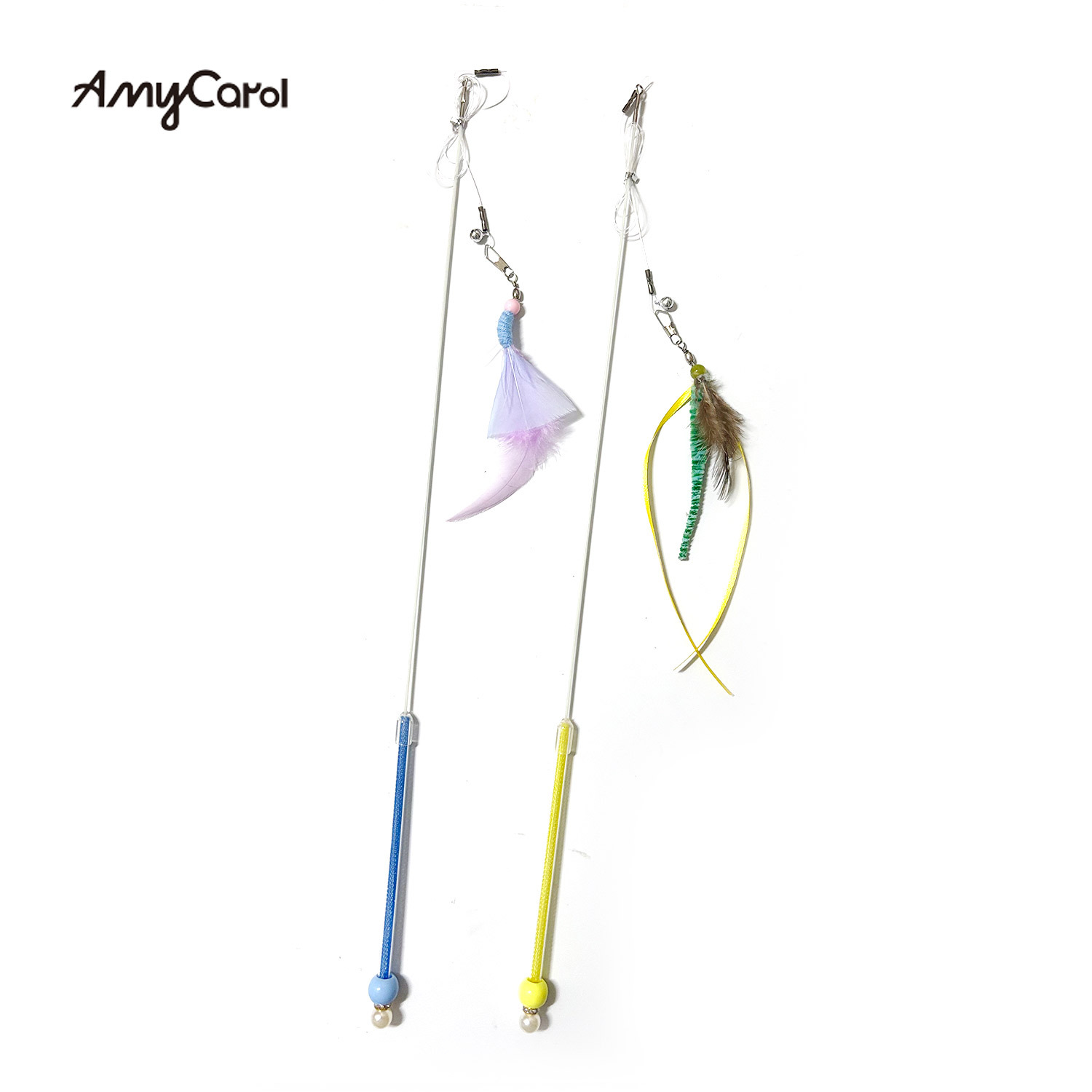 AmyCarol飛趣羽響紙響片長竿長縄自ハイ退屈ネット赤猫逗猫棒玩具