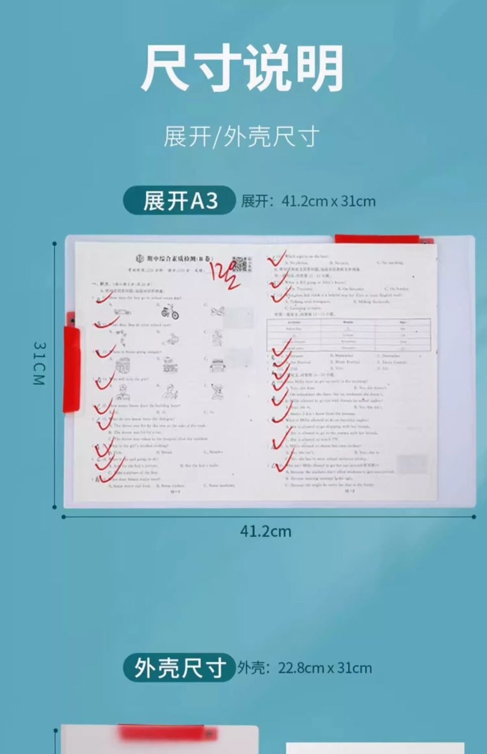 A3 ダブルプルロッドフォルダー 透明インサートテスト用紙収納フォルダー 小中学生用 回転プルロッドフォルダー 回転フォルダー