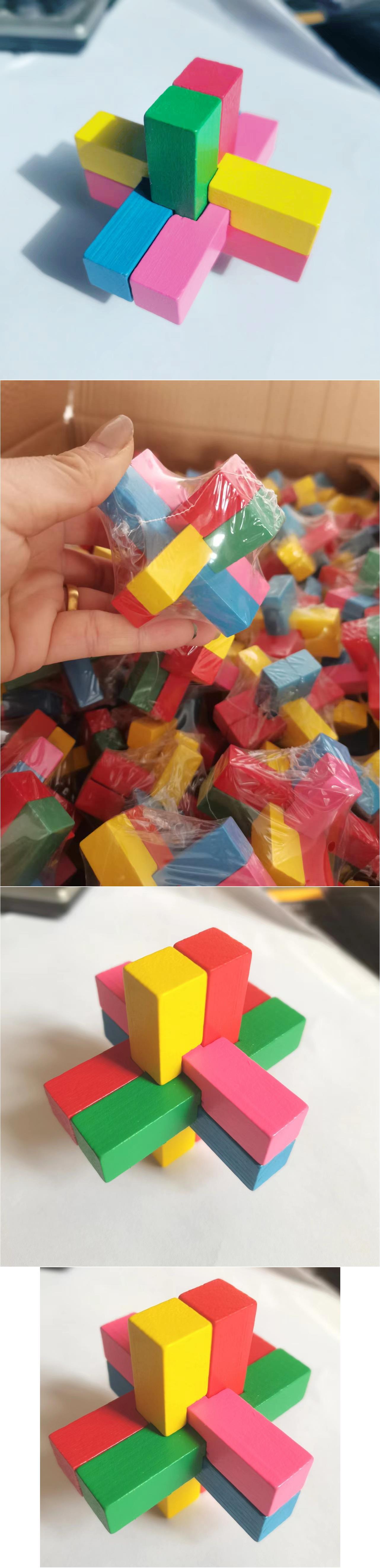 彩色六根六通八卦锁鲁班锁孔明锁憋闷棍儿童智力科教玩具实木