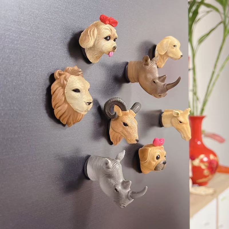 可爱动物头树脂冰箱贴 创意立体卡通磁贴家居装饰个性留言贴