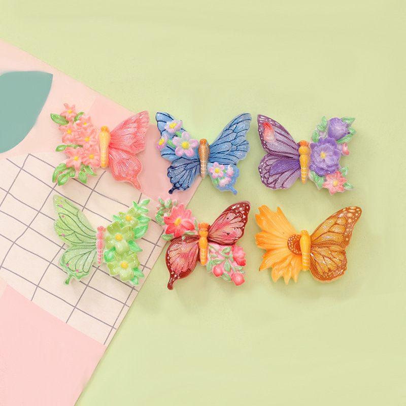 细闪花朵蝴蝶动物儿童配件奶油胶卡通树脂饰品手工发夹贴片材料